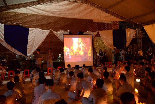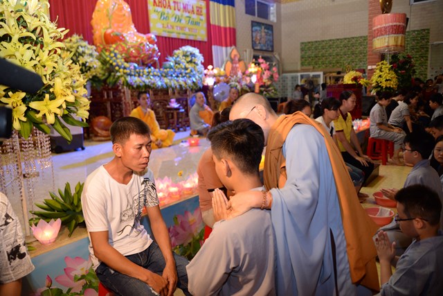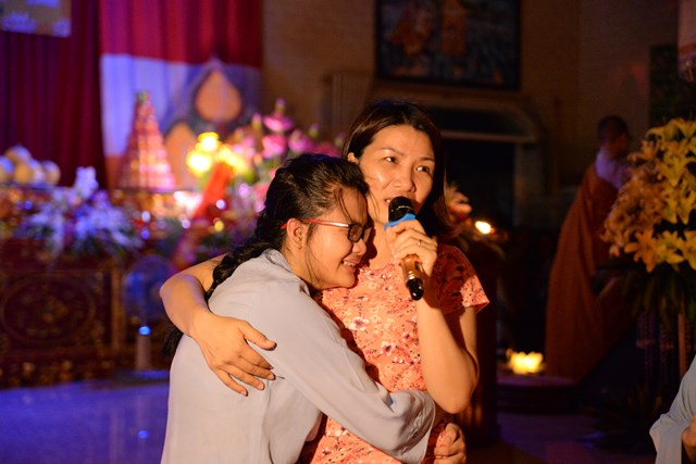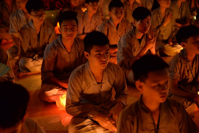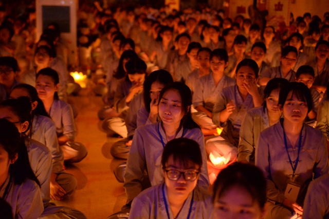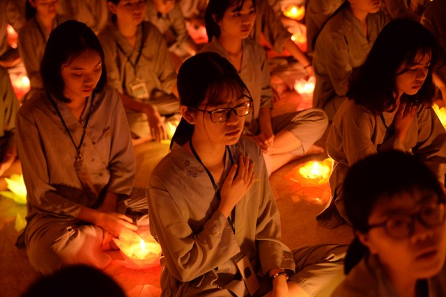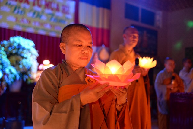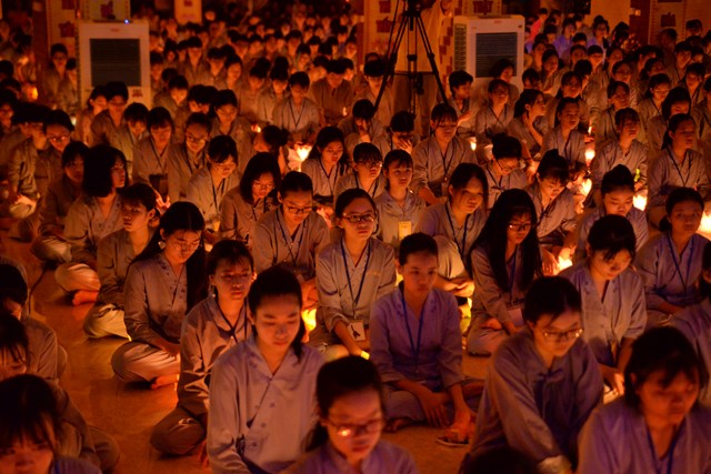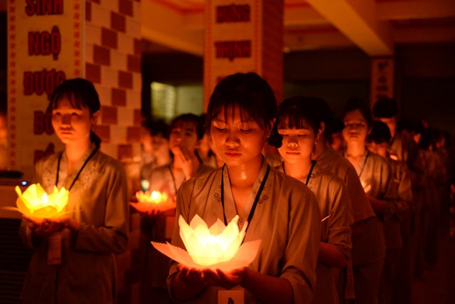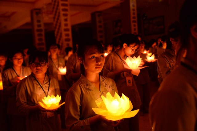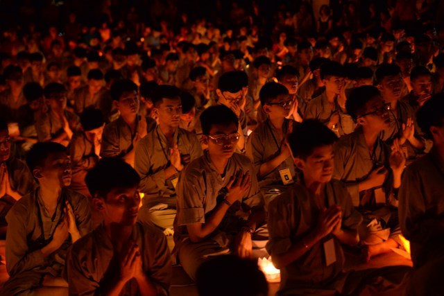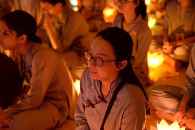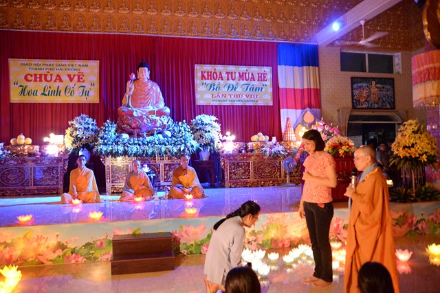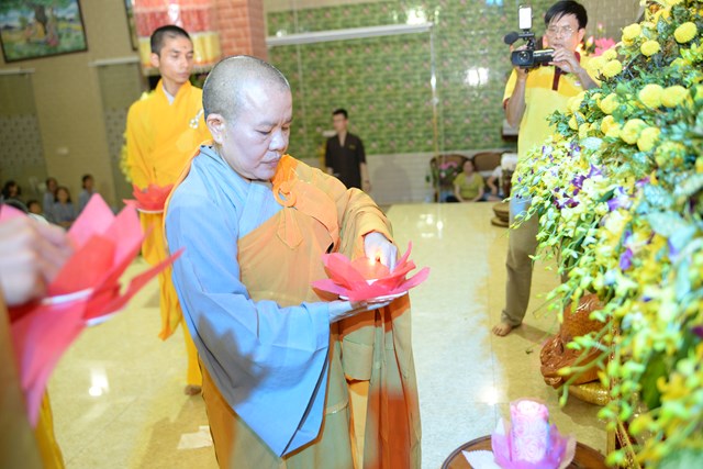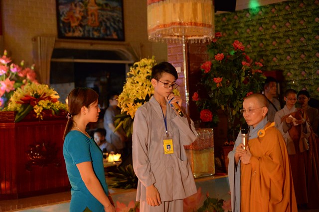 Thời khắc linh thiêng nhất của buổi lễ đã đến khi chư tôn đức đón nhận ánh sáng từ bàn Phật, ánh sáng của Từ Bi và Trí Tuệ để truyền sang cho hơn 800 khóa sinh tham dự khóa tu mùa hè năm nay. Từng ngọn nến đã được thắp sáng khắp giảng đường, một không gian lung linh, huyền ảo dần dần được hiện ra trước mắt. Trước mặt các em là những ngọn nến của tình thương và sự hiểu biết. Cầm ngọn nến trên tay, các em chắc hẳn sẽ tự hứa với lòng mình là từ nay sẽ không để cho cha mẹ phải buồn, sẽ cố gắng học tập để không phụ lòng quý sư thầy, sư cô đã dạy dỗ các em trong những ngày vừa qua cũng như không phụ lòng cha mẹ đã không quản ngại gian nan, vất vả, nuôi dạy các em để các em có được thân hình, vóc dáng như ngày hôm nay, rất nhiều giọt nước mắt đã rơi khi các em tự thấy bản thân mình có lỗi với cha mẹ. Ban tổ chức khóa tu cũng hy vọng khi về nhà các em sẽ thay đổi cả cách sống và cách suy nghĩ của mình, trở thành những con người tốt, sống có ích cho gia đình và xã hội.