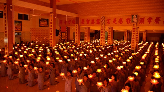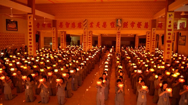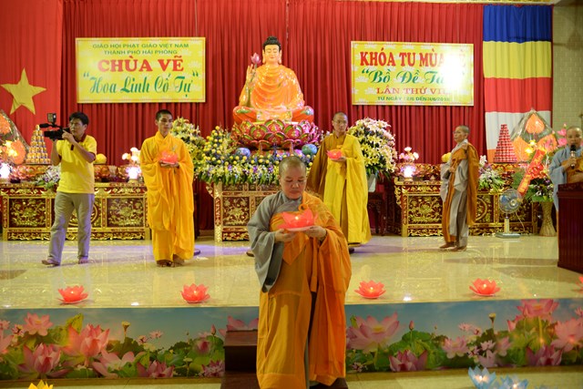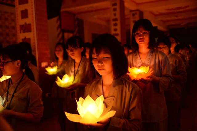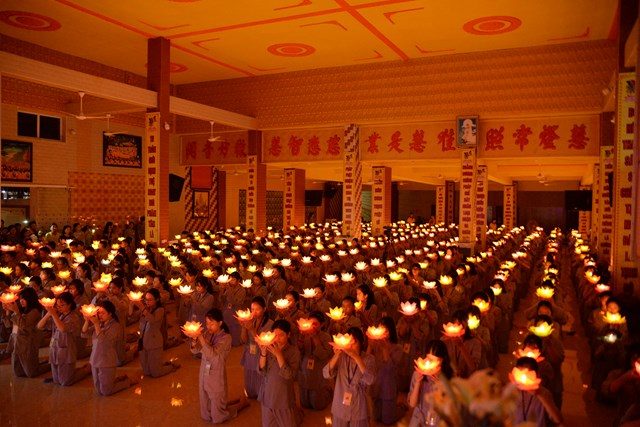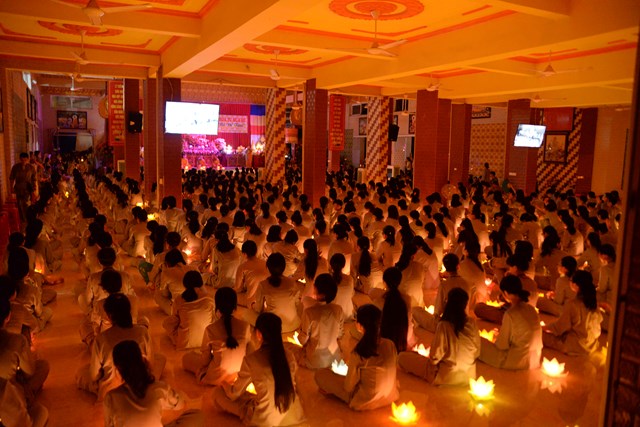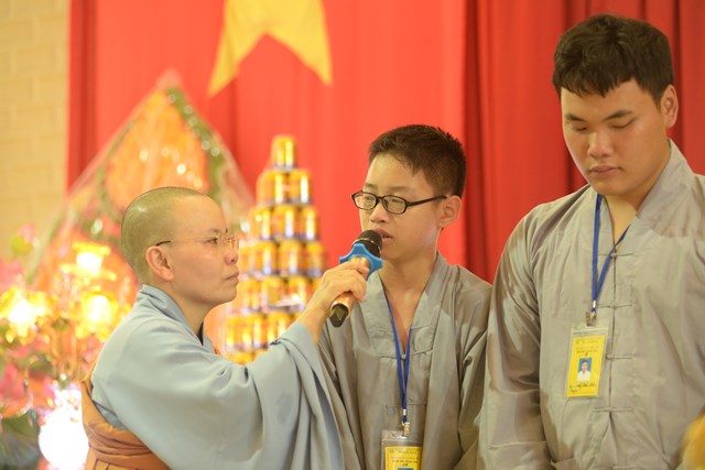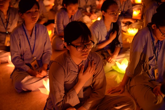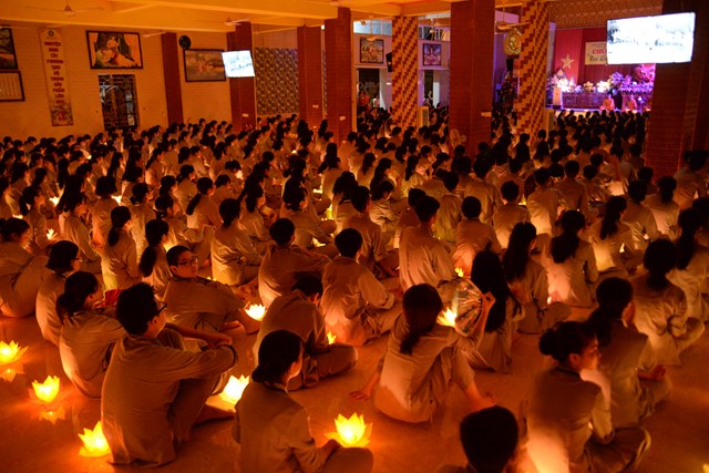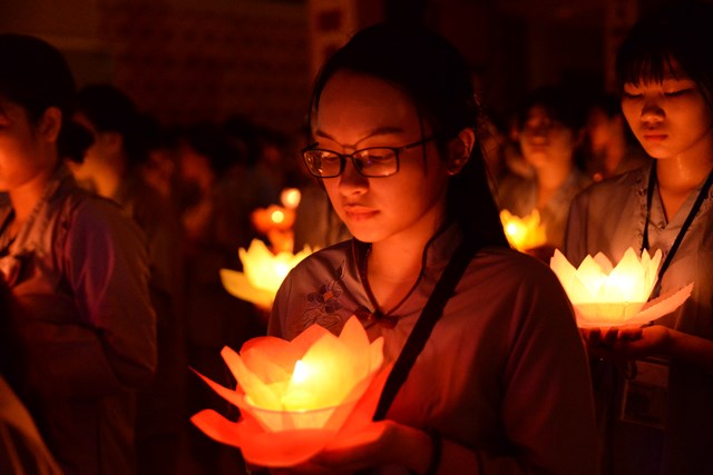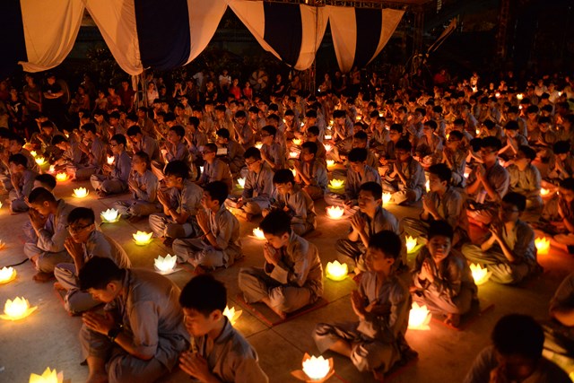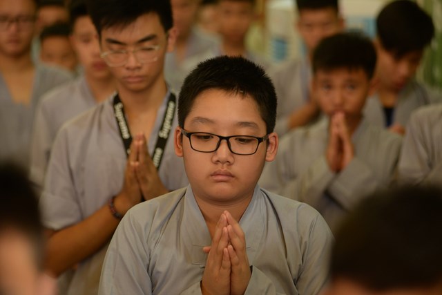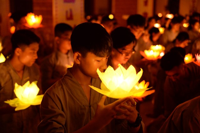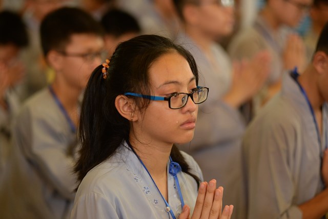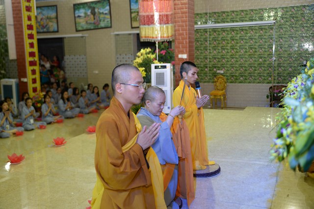 Thời khắc linh thiêng nhất của buổi lễ đã đến khi chư tôn đức đón nhận ánh sáng từ bàn Phật, ánh sáng của Từ Bi và Trí Tuệ để truyền sang cho hơn 800 khóa sinh tham dự khóa tu mùa hè năm nay. Từng ngọn nến đã được thắp sáng khắp giảng đường, một không gian lung linh, huyền ảo dần dần được hiện ra trước mắt. Trước mặt các em là những ngọn nến của tình thương và sự hiểu biết. Cầm ngọn nến trên tay, các em chắc hẳn sẽ tự hứa với lòng mình là từ nay sẽ không để cho cha mẹ phải buồn, sẽ cố gắng học tập để không phụ lòng quý sư thầy, sư cô đã dạy dỗ các em trong những ngày vừa qua cũng như không phụ lòng cha mẹ đã không quản ngại gian nan, vất vả, nuôi dạy các em để các em có được thân hình, vóc dáng như ngày hôm nay, rất nhiều giọt nước mắt đã rơi khi các em tự thấy bản thân mình có lỗi với cha mẹ. Ban tổ chức khóa tu cũng hy vọng khi về nhà các em sẽ thay đổi cả cách sống và cách suy nghĩ của mình, trở thành những con người tốt, sống có ích cho gia đình và xã hội.