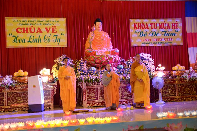 Ấn tượng hơn nữa trong đêm thứ 5 của khóa tu mùa hè Bồ Đề Tâm năm nay là chương trình thắp nến tri ân cha mẹ. Chương trình được cung đón Ni Sư Thích Tâm Chính – Trụ trì chùa Vẽ, trưởng BTC khóa tu mùa hè Bồ Đề Tâm lần thứ 8 cùng các sư thầy, sư cô trong ban điều phối của khóa tu, cùng đại diện phụ huynh của hơn 800 khóa sinh tham dự khóa tu mùa hè năm nay.