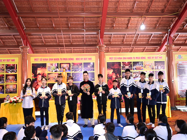 Trong buổi giao lưu, gặp gỡ với hơn 200 khóa sinh tham dự khóa tu, Diễn giả MC Hạnh Phúc đã chia sẻ với các em những bài học, những câu chuyện về “ Lòng Biết Ơn”. Trong cuộc sống, lòng biết ơn có một ý nghĩa hết sức quan trọng đối với sự hoàn thiện và phát triển nhân cách con người. Lòng biết ơn cần phải thể hiện trong suy nghĩ, cũng như hành động. Thông qua bài học này, giúp các em biết yêu thương, giúp đỡ mọi người xung quanh, luôn sống lạc quan, yêu đời và luôn biết ơn những người đã cưu mang, giúp đỡ chúng ta. Đặc biệt, biết ơn Đức Phật đã để lại cho chúng ta một kho tàng giáo lý, những lời dạy quý báu để chúng ta áp dụng vào trong cuộc sống thường nhật. Biết ơn các anh hùng liệt sỹ đã hy sinh xương máu để chúng ta có được cuộc sống yên bình và hạnh phúc như ngày hôm nay.