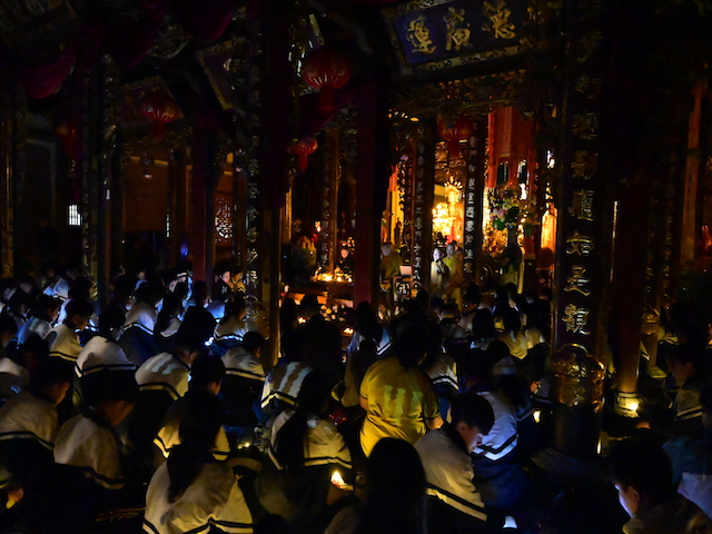 Buổi tối cùng ngày, các em khóa sinh đã được tham gia buổi thiền trà trong một không gian ấm áp và ý nghĩa được diễn ra tại chính điện chùa Khánh Vân, với chủ đề “ Tri ân và Trưởng thành”. Tham dự buổi thiền trà, các em khóa sinh đã được giao lưu với quý sư thầy, quý sư cô, được nghe kệ thỉnh chuông, nghe nhạc thiền và thưởng trà, cùng với những chiếc bánh ngọt ngào. Có lẽ đây là lần đầu tiên các em được tham dự buổi thiền trà tại chùa do chính các chuyên gia có thâm niên về trà, trà sư, trà nương trực tiếp pha trà và chia sẻ một số kinh nghiệm về nghệ thuật pha trà, cũng như cách thưởng trà. Uống trà cũng là một cách để chúng ta thiền định, tĩnh tâm, đưa tâm mình trở về với hiện tại; Trong những giây phút tĩnh lặng khi thưởng trà, con người sẽ vượt qua những định kiến trong tiềm thức. Để từ đó, bỏ lại những lo âu, phiền muộn ngự trị trong tâm trí của mỗi chúng ta.