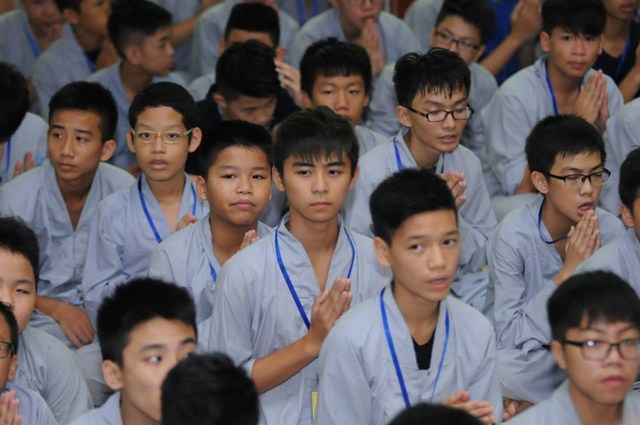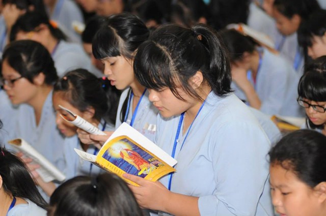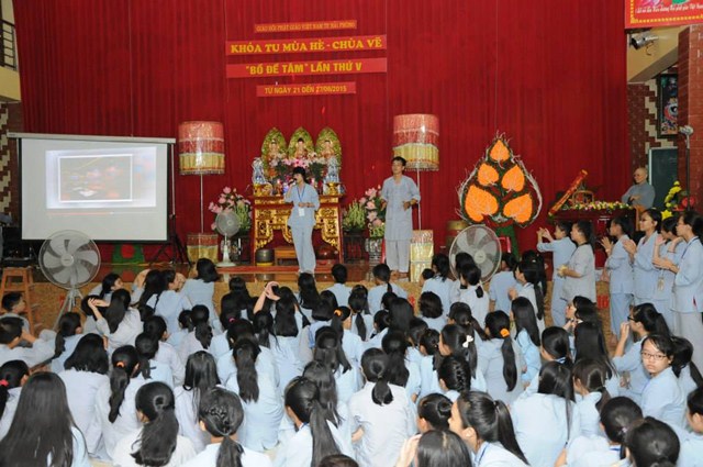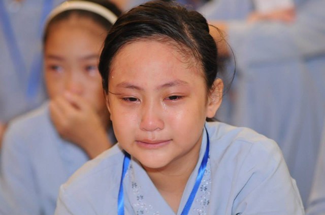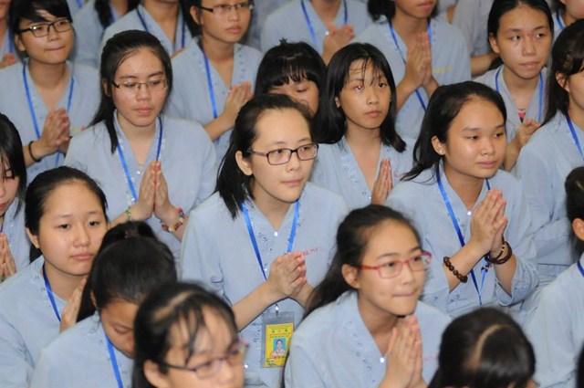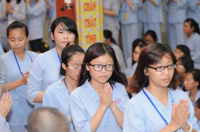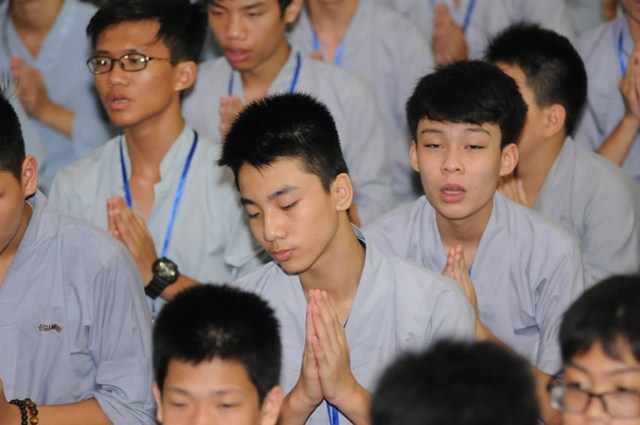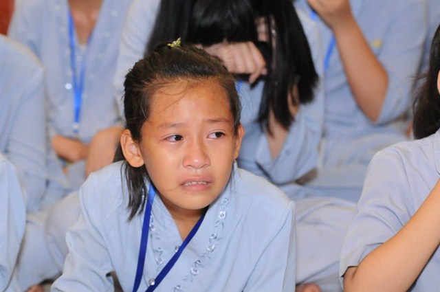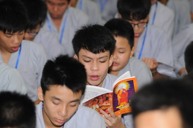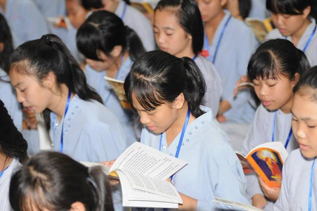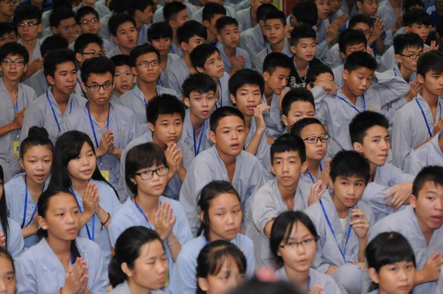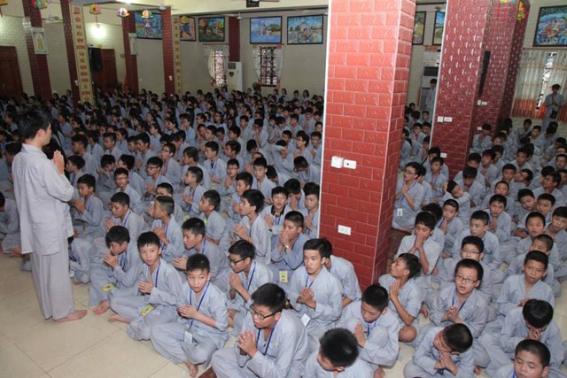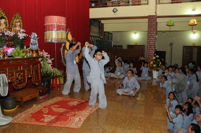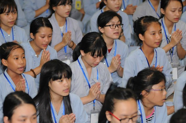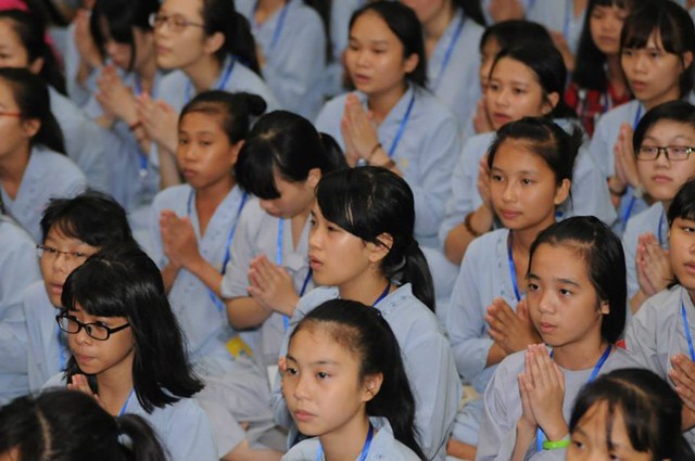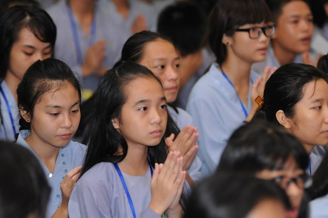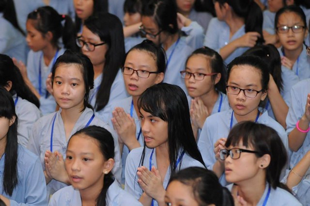 Buổi chiều thì các em lại lắng đọng tâm tư nghe thời pháp thoại ” Tâm Hiếu Của Em” do Đại Đức Thích Trí Định thuyết giảng, qua những câu chuyện về Đạo Hiếu, Tâm Hiếu, các em đã không khỏi xúc động và từng giọt nước mắt bắt đầu rơi, không khí trầm lắng lan tỏa khắp giảng đường khi cả đại chúng lúc này đều nghĩ về 2 đấng sinh thành. Dường như lúc này hình ảnh của ba mẹ các em đang hiển hiện trước mặt các em, những ai đã làm cho ba mẹ buồn thấy mình có lỗi với ba mẹ và trong lòng thầm hứa ngay sau khóa tu này sẽ về để ôm ba mẹ mình và nói lời xin lỗi cha mẹ mà có thể từ trước đến nay các em chưa bao giờ nói được câu nói ” Con xin lỗi ba”, ” Con xin lỗi mẹ”.