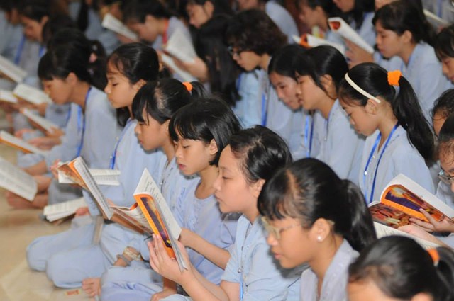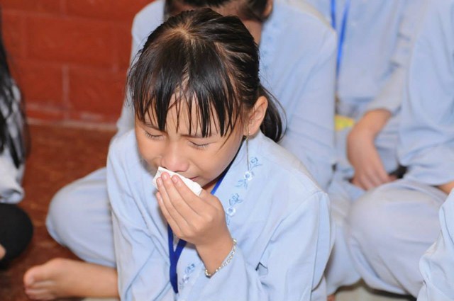 Cảm xúc lắng đọng đó lại càng được thấm thía hơn khi buổi tối các em tụng kinh Vu Lan – Báo Hiếu, những tình cảm đối với ba mẹ lại ùa về qua lời Phật dạy trong kinh Vu Lan – Báo Hiếu, qua lời kinh này các em càng hiểu được công lao trời biển của cha mẹ to lớn như thế nào, cha mẹ tất cả vì các con, hy sinh vì các con, thậm trí hy sinh cả tính mạng, cả cuộc đời mình cho các con.