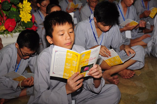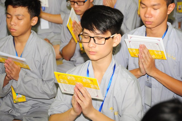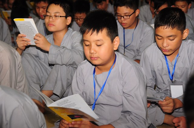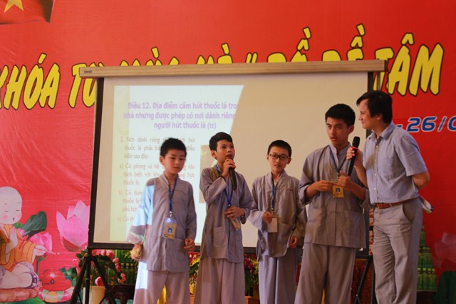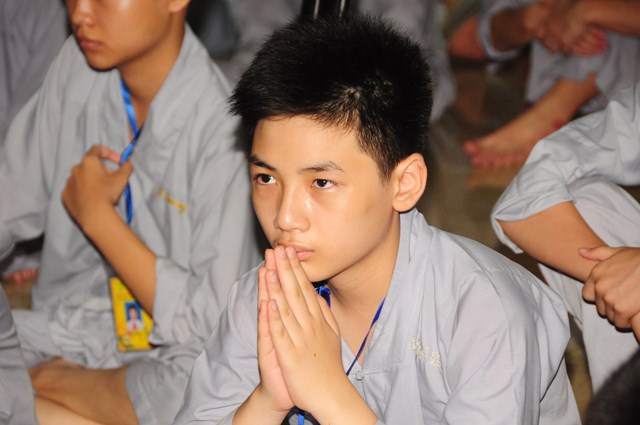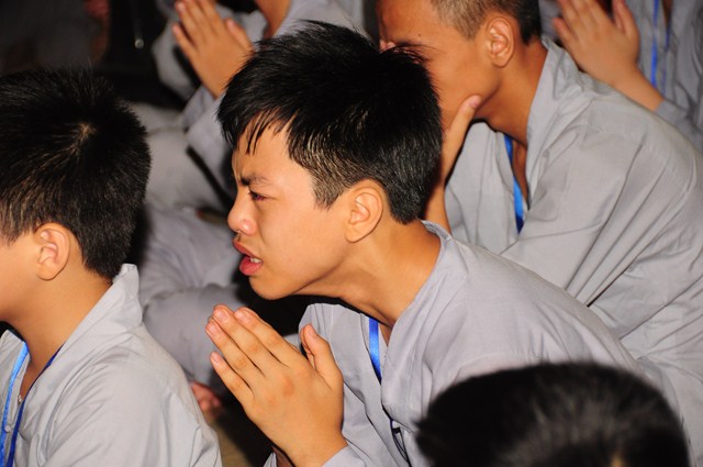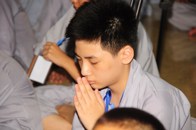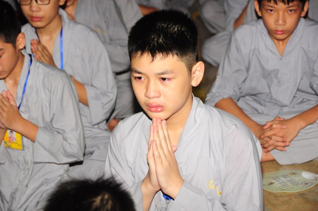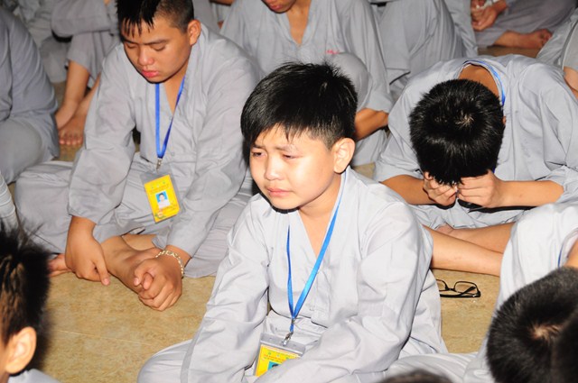 Kết thúc buổi thuyết giảng, Đại đức Thích Tánh Khả đã cho các em khóa sinh quỳ lên và đọc lại 10 trọng ân giúp các em ghi nhớ những thâm ân mà cha mẹ đã dành cho các em mà các em đã được nghe trong buổi tối ngày hôm nay.