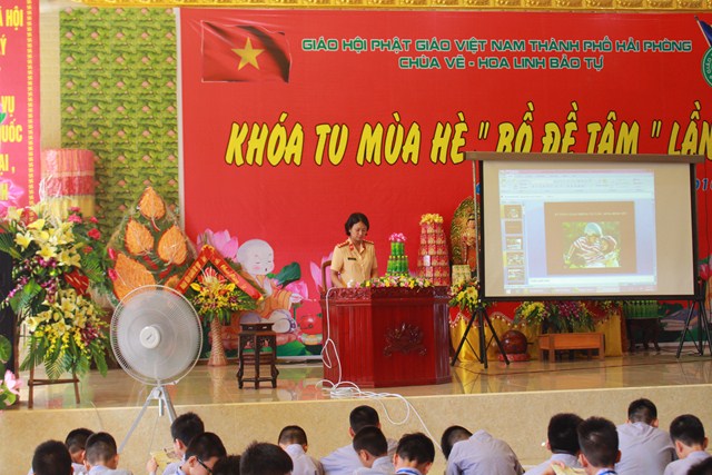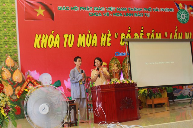 Buổi chiều cùng ngày các em đã được lãnh đạo MTTQVN thành phố Hải Phòng,  Ban an toàn giao thông thành phố Hải Phòng chia sẻ những kiến thức cơ bản về những tệ nạn xã hội hiện nay và những kiến thức về an toàn giao thông. Hiện nay, có rất nhiều các em học sinh, sinh viên chưa nghiêm chỉnh thực hiện theo đúng những quy định về an toàn giao thông quốc gia. Vẫn còn rất nhiều em đi đường vượt đèn đỏ, lạng lách, đánh võng, đi hàng đôi, hàng ba ngoài đường, không có bằng lái xe hoặc chưa đủ tuổi lái xe mô tô 2 bánh mà vẫn tham gia giao thông, không đội mũ bảo hiểm khi tham gia giao thông vv…. Điều này, đã gây ra những hậu quả đáng tiếc xảy ra, thậm chí có nhiều em đã bị thiệt mạng. Vì vậy việc thực hiện theo đúng những quy định về an toàn giao thông là một việc làm hết sức cần thiết mà các em cần phải nghiêm chỉnh thực hiện. Có được như vậy thì xã hội của chúng ta mới có thể phát triển được.