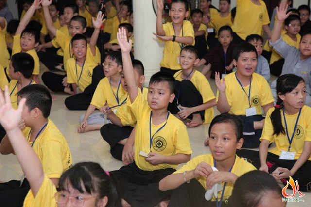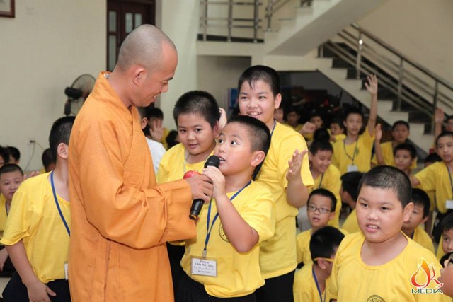 Buổi sáng các em khóa sinh đã được giao lưu với Đại Đức Thích Pháp Như thông qua các câu hỏi về cuộc đời đức Phật từ khi đức Phật đản sinh cho đến khi đức Phật nhập niết bàn, các em xung phong trả lời rất sôi nổi, với những câu trả lời rất ngộ nghĩnh.