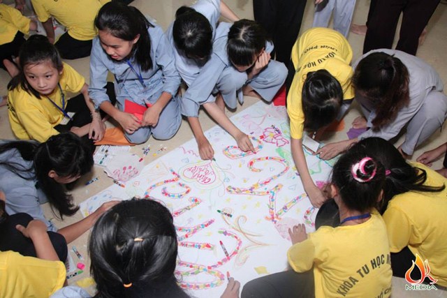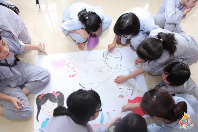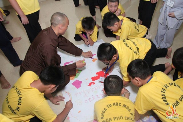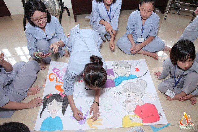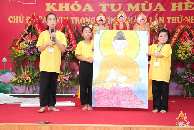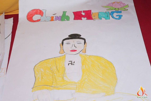 Ngay sau khi giao lưu và được nghe Đại đức Thích Pháp Như thuyết giảng về Cuộc đời đức Phật em đã được thỏa sức thể hiện năng khiếu của mình qua cuộc thi vẽ tranh cùng chủ đề của bài giảng “ Cuộc đời đức Phật” với những ý tưởng rất táo bạo, trí tưởng tượng của các em rất phong phú, các em tự hình dung ra hình ảnh của đức Phật sau đó dùng màu sáp để vẽ lên giấy.