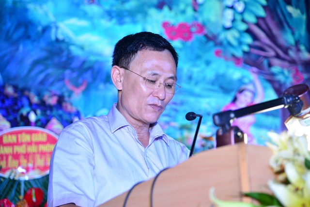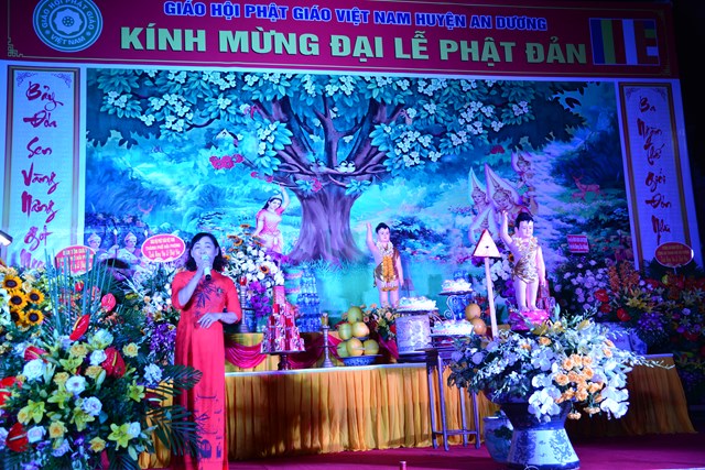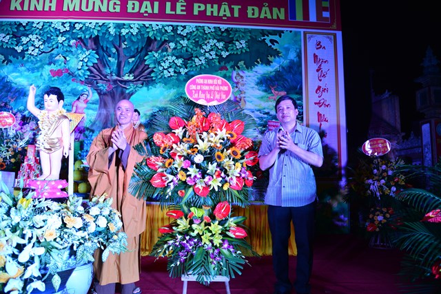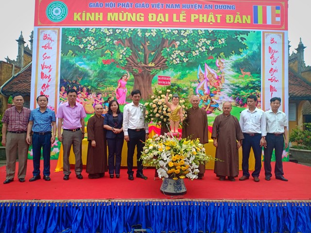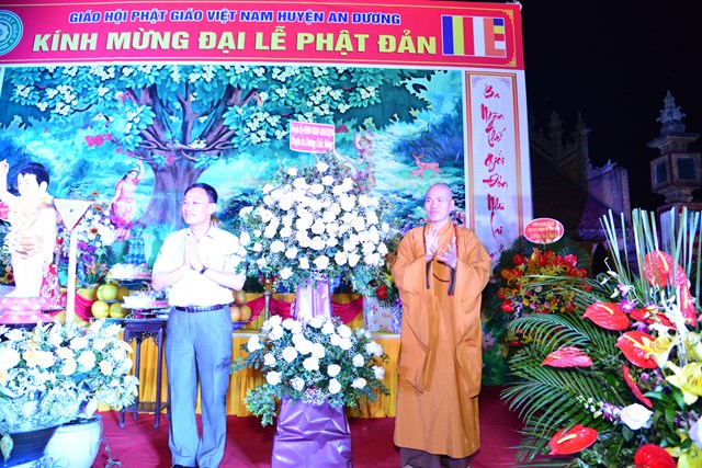 Thay mặt cho chính quyền địa phương, ông: Lê Văn Cường – Phó chủ tịch UBND huyện An Dương đã lên phát biểu chúc mừng chư tôn đức Tăng Ni và Phật tử nhân Đại lễ Phật Đản PL. 2563 – DL. 2019 đón một mùa Phật đản an lạc, cát tường và chúc cho Đại lễ Phật Đản Liên Hợp Quốc lần thứ 16, tổ chức tại Việt Nam được thành công tốt đẹp. Đồng thời, ông cũng khẳng định vai trò của Phật giáo trong khối đoàn kết Dân tộc, cũng như đã có những cống hiến to lớn và hy sinh rất vẻ vang cho cách mạng… “ Phật giáo luôn có những đóng góp cho.sự nghiệp bảo vệ và xây dựng Đất nước với tinh thần Hộ Quốc – An dân – Đồng hành cùng Dân tộc, Phật giáo là một tôn giáo có truyền thống yêu nước, luôn gắn bó và đồng hành cùng Dân tộc trong suốt chặng đường xây dựng và bảo vệ Tổ quốc trong đó có sự đóng góp rất to lớn của Phật giáo huyện An Dương…”