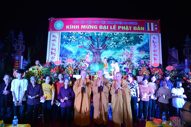 Tối ngày 10/5/2019 ( nhằm ngày 6/4/Kỷ Hợi), tại chùa Phúc Quang, thôn Vĩnh Khê, xã An Đồng, huyện An Dương, thành phố Hải Phòng, BTS GHPGVN huyện An Dương đã long trọng tổ chức Đại lễ kính mừng Phật Đản PL. 2563 – DL. 2019 và trao 130 phần quà cho các gia đình có hoàn cảnh khó khăn đang sinh sống trên địa bàn huyện An Dương.