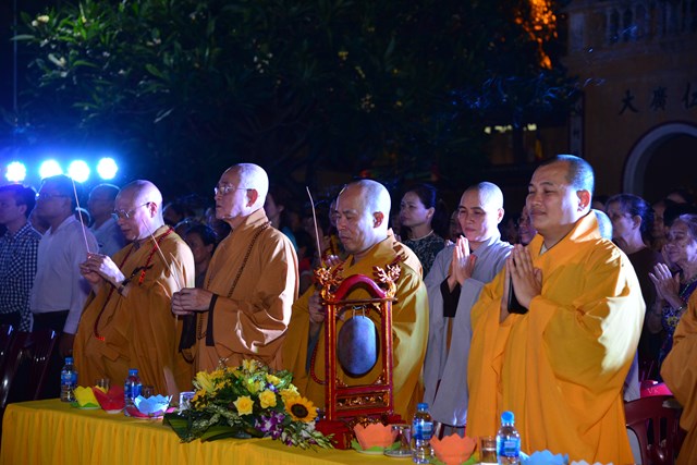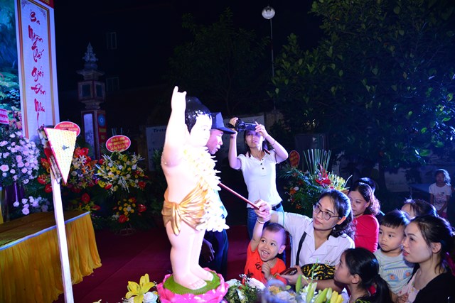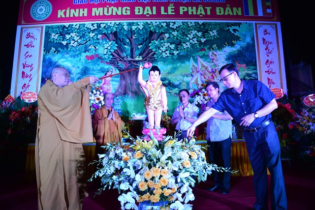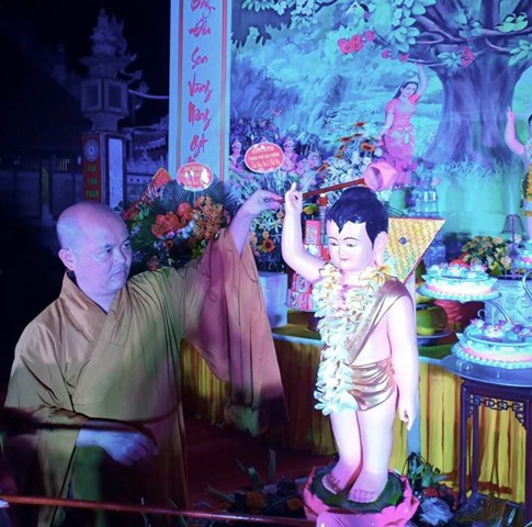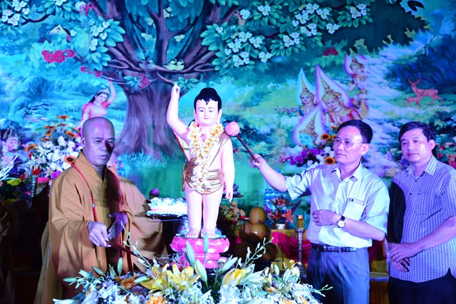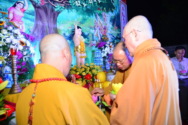 Trước khi kết thúc buổi lễ, Chư tôn đức Tăng Ni, quý quan khách chính quyền và các Phật tử đã cử hành nghi lễ dâng hương bạch Phật, tụng bài sám Khánh đản, thả hoa đăng cầu nguyện Thế giới hòa bình, chúng sinh an lạc, đọc kệ tắm Phật và cử hành nghi lễ tắm Phật theo nghi thức truyền thống của Phật giáo.