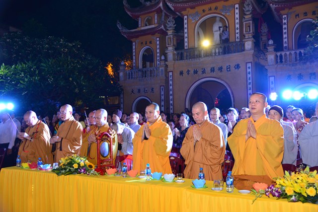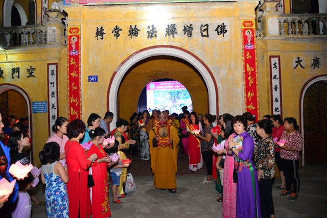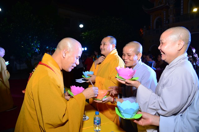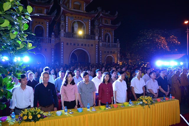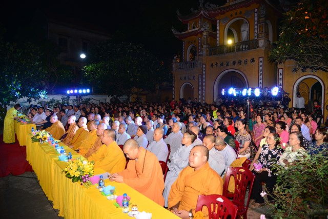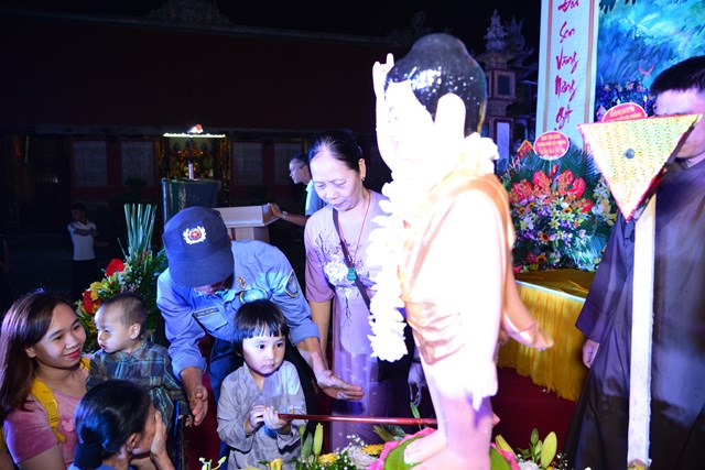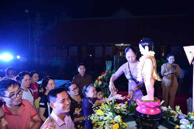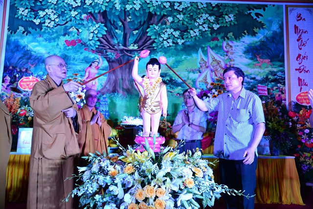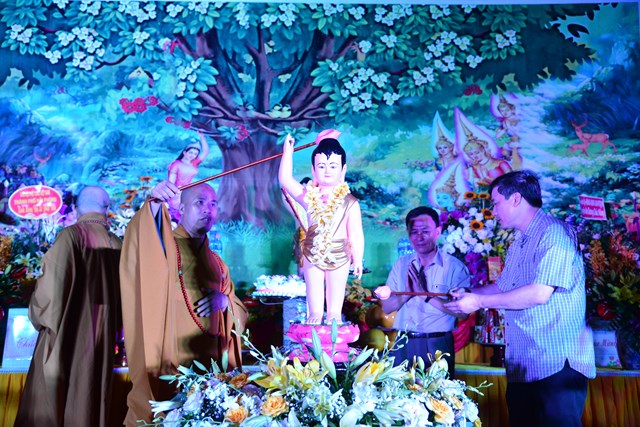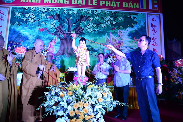Trước khi kết thúc buổi lễ, Chư tôn đức Tăng Ni, quý quan khách chính quyền và các Phật tử đã cử hành nghi lễ dâng hương bạch Phật, tụng bài sám Khánh đản, thả hoa đăng cầu nguyện Thế giới hòa bình, chúng sinh an lạc, đọc kệ tắm Phật và cử hành nghi lễ tắm Phật theo nghi thức truyền thống của Phật giáo.