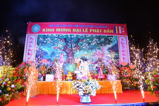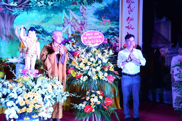 Thay mặt cho chính quyền địa phương, ông: Lê Văn Cường – Phó chủ tịch UBND huyện An Dương đã lên phát biểu chúc mừng chư tôn đức Tăng Ni và Phật tử nhân Đại lễ Phật Đản PL. 2563 – DL. 2019 đón một mùa Phật đản an lạc, cát tường và chúc cho Đại lễ Phật Đản Liên Hợp Quốc lần thứ 16, tổ chức tại Việt Nam được thành công tốt đẹp. Đồng thời, ông cũng khẳng định vai trò của Phật giáo trong khối đoàn kết Dân tộc, cũng như đã có những cống hiến to lớn và hy sinh rất vẻ vang cho cách mạng… “ Phật giáo luôn có những đóng góp cho.sự nghiệp bảo vệ và xây dựng Đất nước với tinh thần Hộ Quốc – An dân – Đồng hành cùng Dân tộc, Phật giáo là một tôn giáo có truyền thống yêu nước, luôn gắn bó và đồng hành cùng Dân tộc trong suốt chặng đường xây dựng và bảo vệ Tổ quốc trong đó có sự đóng góp rất to lớn của Phật giáo huyện An Dương…”