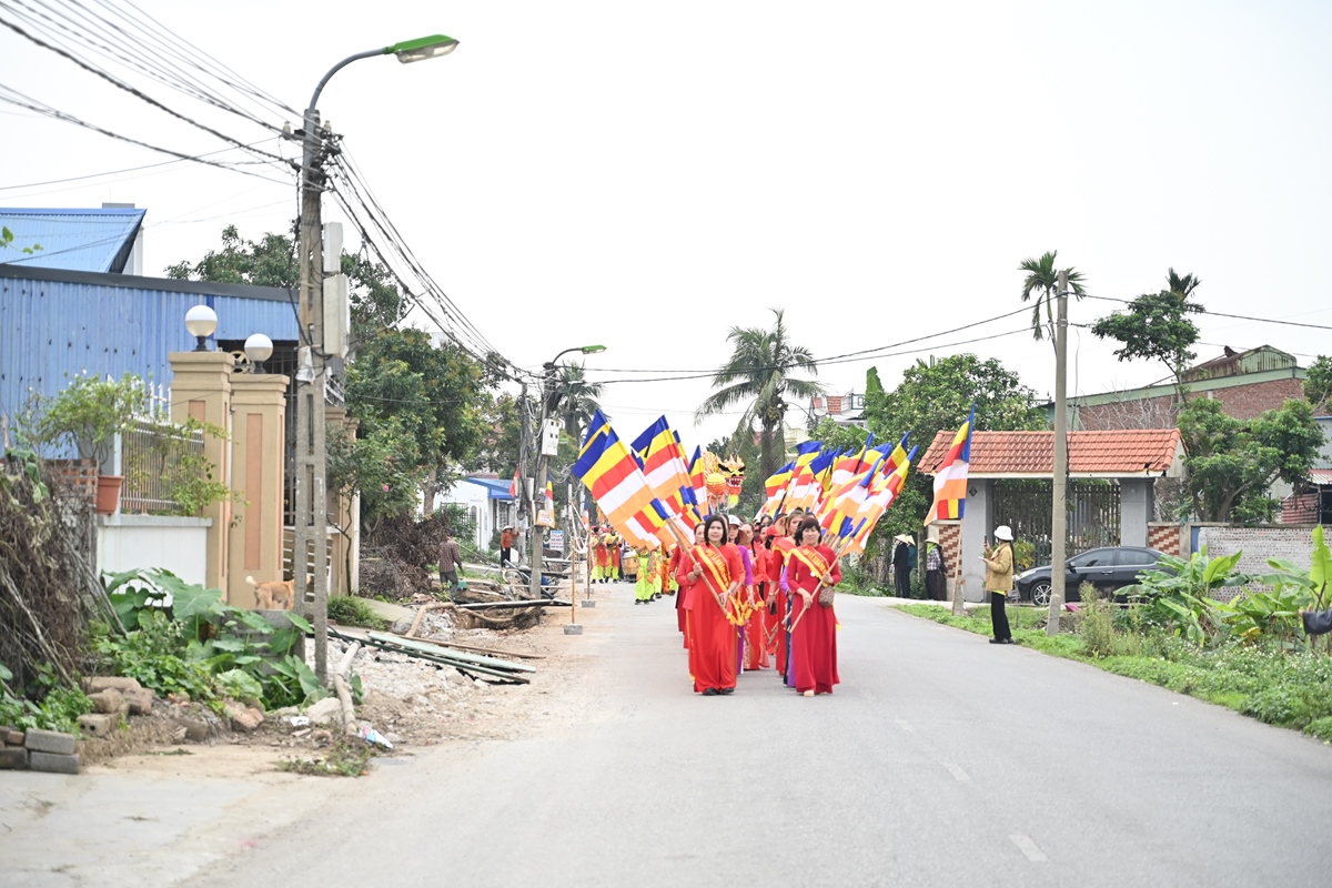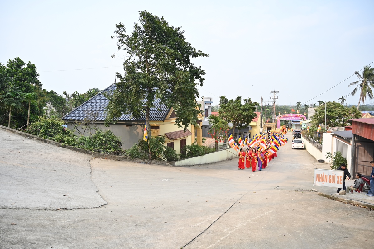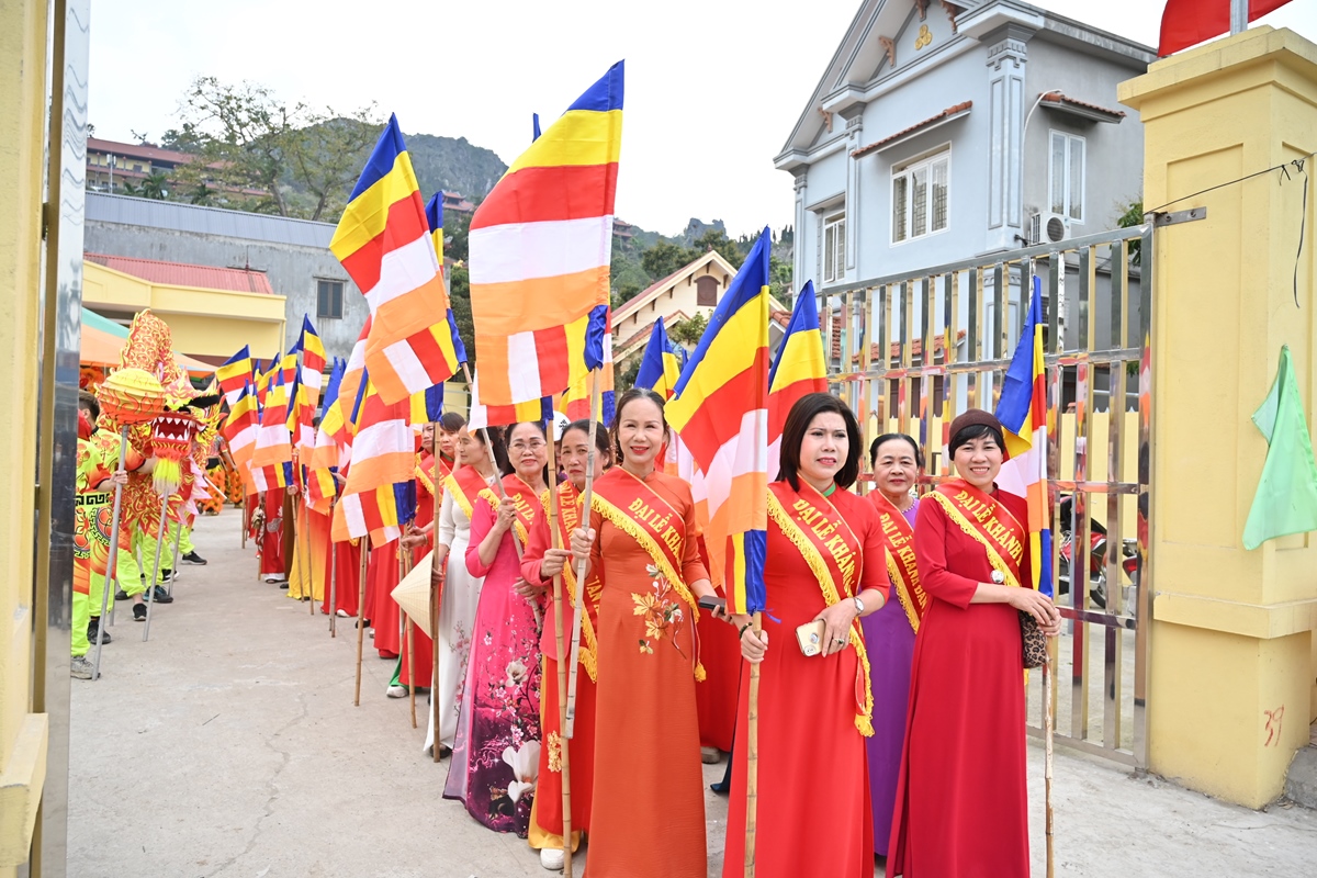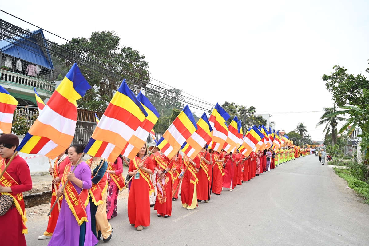 Đi đầu đoàn rước là đoàn các Phật tử cầm cờ Phật giáo