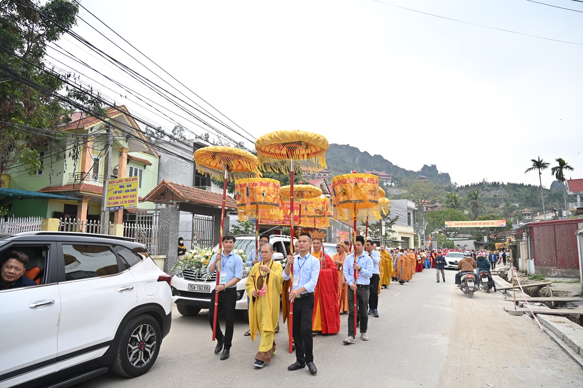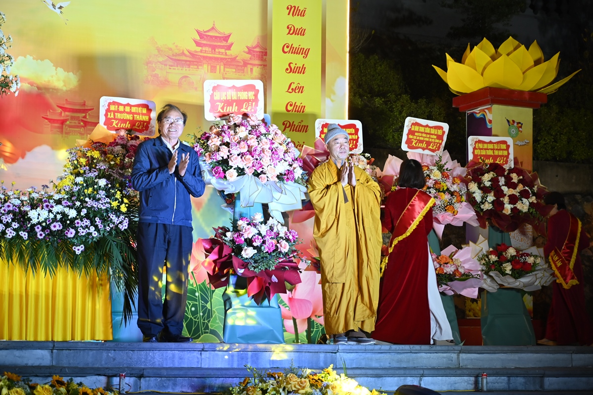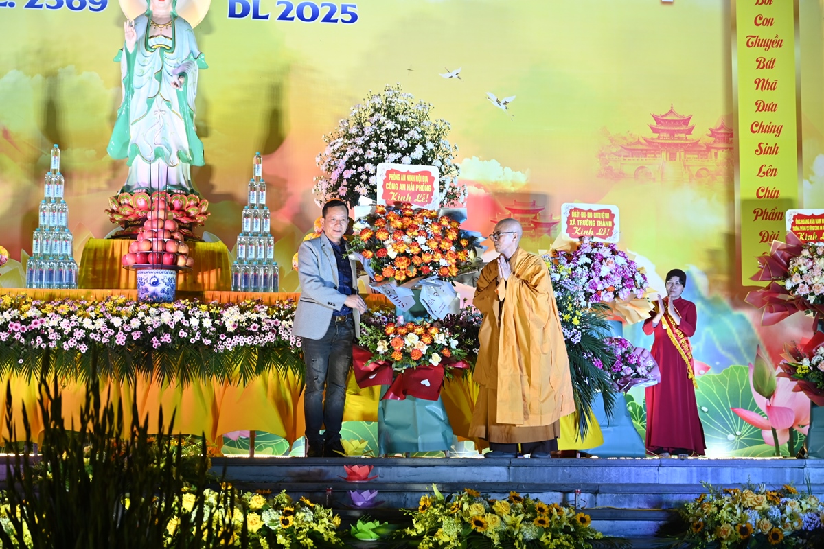 Quang lâm chứng minh và tham dự buổi lễ có HT. Thích Thanh Giác – Phó trưởng Ban Thường trực BTS GHPGVN Tp. Hải Phòng, trụ trì chùa Long Hoa, trưởng BTC đại lễ; TT. Thích Thanh Hiển – UVTT kiêm Chánh Thư ký BTS GHPGVN thành phố; TT. Thích Quảng Minh – UVTT ban Văn hóa TƯ GHPGVN, UVTT, trưởng ban Ban văn hóa GHPGVN thành phố, trưởng BTS GHPGVN huyện Tiên Lãng; TT. Thích Bản Điền – UVTT, Phó chánh Văn phòng BTS GHPGVN thành phố, Trưởng BTS GHPGVN huyện An Lão; TT. Thích Thanh Lợi – Phó ban Nghi lễ TƯ, trưởng hệ phái Linh Quang Trà Lũ Trung, tỉnh Nam Định; TT. Thích Thanh Nghĩa – UVTT Ban Nghi lễ TƯ, phó trưởng ban điều hành hệ phái Linh Quang Trà Lũ Trung; NS.Thích Tâm Chính – UVTT Ban Hoằng pháp, ban Từ thiện -xã hội TƯ, UVTT BTS GHPGVN thành phố, cùng chư Tôn đức Tăng Ni đại diện cho sơn môn Tổ đình Linh Quang Trà Lũ Trung, chư Tôn đức Tăng Ni BTS GHPGVN Tp. Hải Phòng, chư Tôn đức Tăng Ni ủy viên BTS GHPGVN các quận, huyện, chư Tôn đức Tăng Ni trụ trì các chùa trong huyện và các chùa trên địa bàn thành phố.