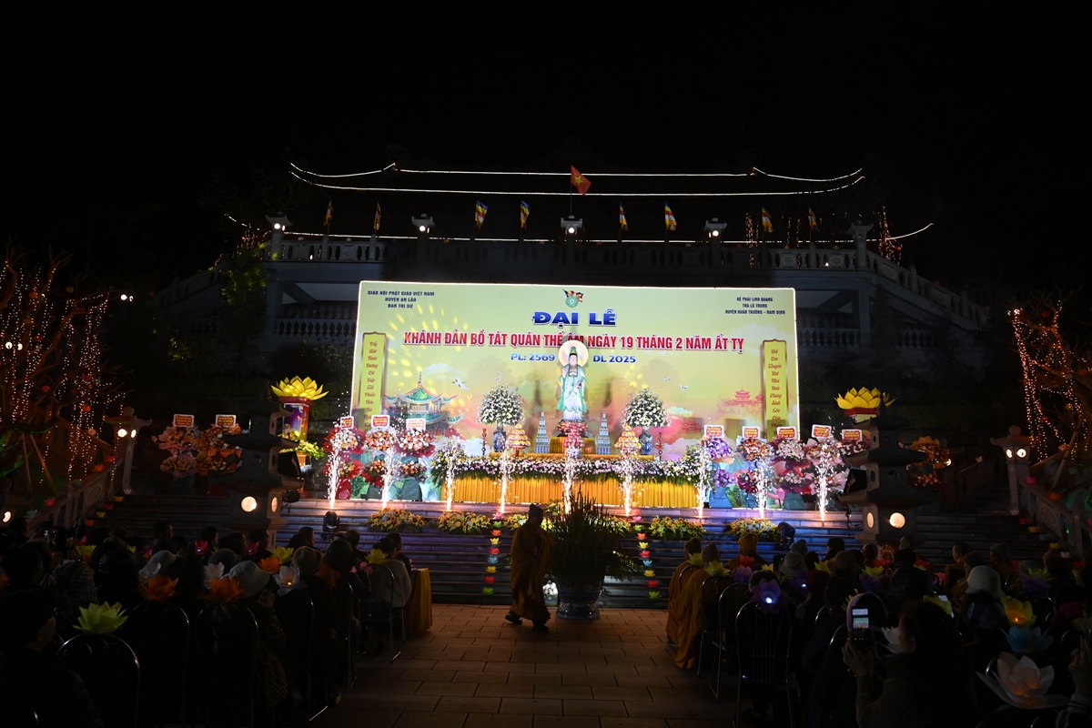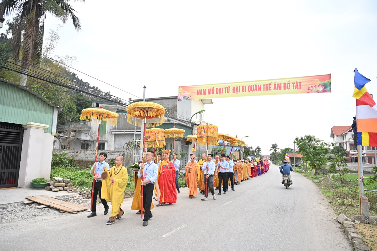 Sau nghi thức niệm Phật cầu gia bị, Thượng tọa Thích Bản Điền – Trưởng BTS GHPGVN huyện An Lão đã phát biểu khai mạc, nói lên công hạnh và hình tướng của Bồ – tát Quán Thế Âm. Theo đó, Quán Thế Âm Bồ Tát là một trong những vị Bồ Tát được tôn kính bậc nhất trong Phật giáo, được xem là biểu tượng của lòng tư bi vô hạn và khả năng cứu khổ cứu nạn, trong suốt lịch sử phát triển, hình tượng Ngài xuất hiện rộng rãi trong cả ba truyền thống Phật giáo lớn Nguyên thủy (Nam Tông), Đại Thừa (Bắc Tông) và Kim Cương Thừa (Mật Tông).