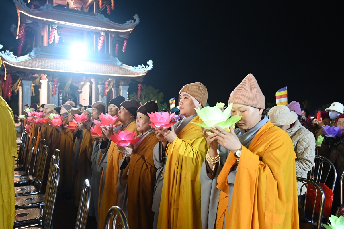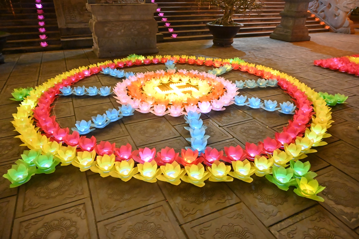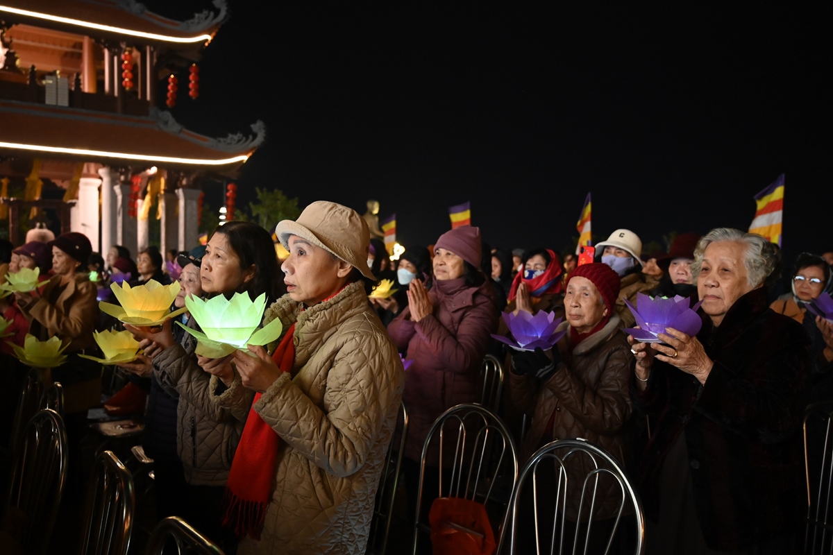 Trước khi kết thúc buổi lễ, chư tôn đức và toàn thể đại chúng đã cử hành nghi lễ dâng hương, bạch Phật, xưng tán hồng danh, lễ mười hai đại nguyện Bồ – tát Quán Thế Âm, dâng hoa đăng cúng dàng, cầu nguyện chư Phật, chư Bồ tát gia hộ cho thế giới hòa bình, chúng sinh an lạc, Phật pháp trường tồn; cầu nguyện cho tất cả mọi người biết yêu thương, đùm bọc lẫn nhau, cùng thực hành tâm từ bi, hạnh hỷ xả, lắng nghe, thấu hiểu, tha thứ, yêu thương của Bồ – tát Quán Thế Âm và mang tâm từ bi trang trải khắp muôn nơi.