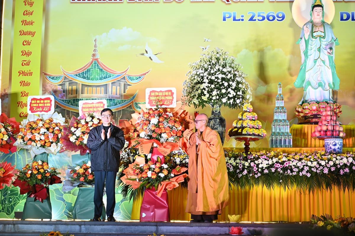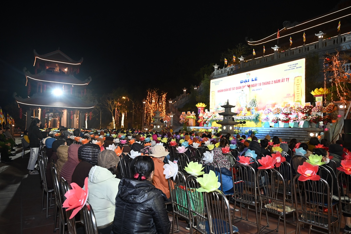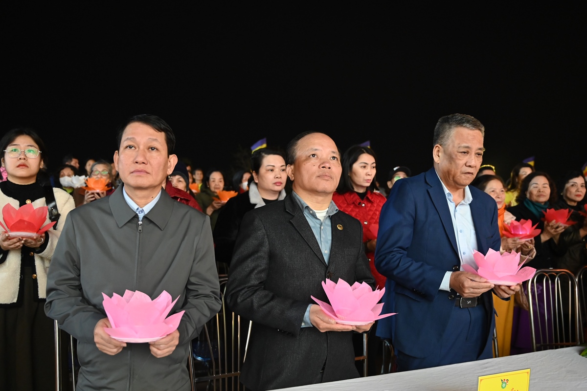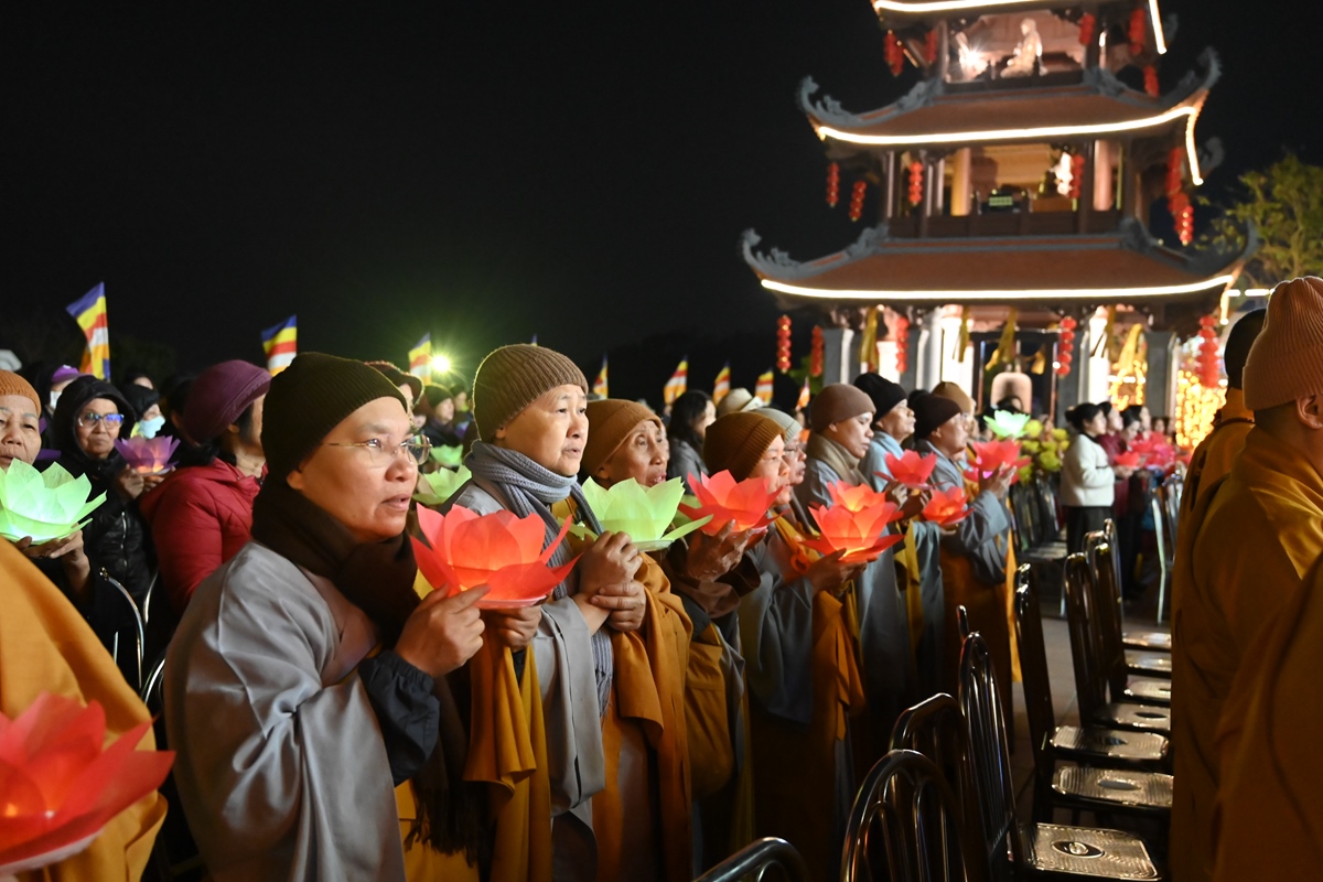 Trước khi kết thúc buổi lễ, chư tôn đức và toàn thể đại chúng đã cử hành nghi lễ dâng hương, bạch Phật, xưng tán hồng danh, lễ mười hai đại nguyện Bồ – tát Quán Thế Âm, dâng hoa đăng cúng dàng, cầu nguyện chư Phật, chư Bồ tát gia hộ cho thế giới hòa bình, chúng sinh an lạc, Phật pháp trường tồn; cầu nguyện cho tất cả mọi người biết yêu thương, đùm bọc lẫn nhau, cùng thực hành tâm từ bi, hạnh hỷ xả, lắng nghe, thấu hiểu, tha thứ, yêu thương của Bồ – tát Quán Thế Âm và mang tâm từ bi trang trải khắp muôn nơi.