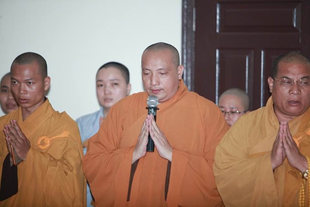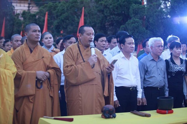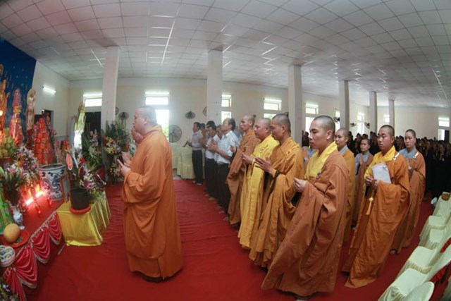 Thay mặt cho BTC đại lễ, Đại đức Thích Quảng Minh – Trưởng BTS GHPGVN huyện Tiên Lãng, trưởng BTC đã lên phát biểu khai mạc đại lễ. Hòa chung với không khí kỷ niệm 70 năm ngày thương binh liệt sỹ ( 27/07/1947 – 27/07/2017) trên cả nước, cũng như thực hiện thông bạch về việc tổ chức lễ cầu siêu cho các anh hùng liệt sỹ trên địa bàn thành phố Hải Phòng của BTS GHPGVN thành phố Hải Phòng, BTS GHPGVN huyện Tiên Lãng đã phối hợp cùng chính quyền địa phương tổ chức lễ tưởng niệm chư Tăng Ni đã hy sinh cho sự nghiệp giải phóng Dân tộc và tụng kinh cầu nguyện cho anh linh của các anh hùng liệt sỹ sớm được siêu thoát, cầu nguyện cho thế giới hòa bình, nhân dân an lạc.