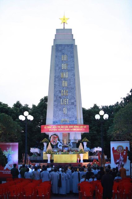 Buổi chiều cùng ngày, Ban trị sự GHPGVN huyện Tiên Lãng và các cấp chính quyền địa phương đã đặt vòng hoa, dâng hương và làm lễ tưởng niệm các anh hùng liệt sỹ tại Đài tưởng niệm các anh hùng liệt sỹ của huyện trong không khí trang nghiêm, thành kính, bày tỏ lòng tri ân, lòng tiếc thương vô hạn trước sự hy sinh anh dũng của các anh để bảo vệ cho độc lập chủ quyền của Dân tộc.