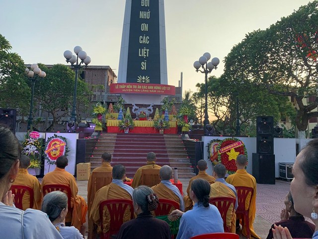 Tại nghĩa trang liệt sỹ của huyện Tiên Lãng và các xã trên địa bàn huyện, chư tôn đức Tăng ni Ban trị sự GHPGVN huyện Tiên Lãng đã cùng các cấp lãnh đạo chính quyền địa phương, bà con Phật tử và nhân dân tổ chức lễ dâng hương tưởng niệm, lễ cầu siêu và thắp nến tri ân các Anh hùng liệt sỹ bằng tấm lòng thành kính, bùi ngùi xúc động trước sự hy sinh lớn lao của các anh dành cho quê hương, Đất nước.