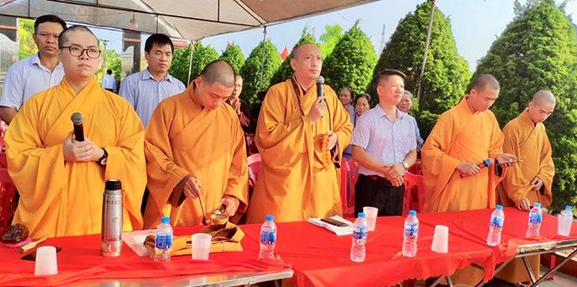 Quang lâm chứng minh buổi lễ có sự hiện diện của Đại đức Thích Quảng Minh – Ủy viên thường trực GHPGVN thành phố Hải Phòng, trưởng Ban văn hóa GHPGVN thành phố Hải Phòng, trưởng BTS GHPGVN huyện Tiên Lãng, chư tôn đức tăng ni ủy viên Ban trị sự GHPGVN huyện Tiên Lãng, chư tôn đức tăng ni trụ trì các chùa trên địa bàn huyện.