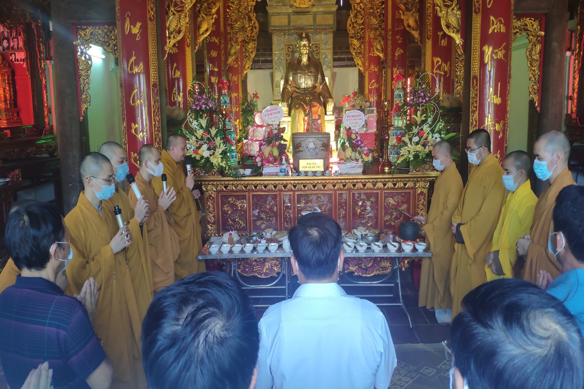 Nhân dịp này, Thượng toạ Thích Quảng Minh đã cùng chư tôn đức uỷ viên Ban trị sự huyện tổ chức lễ cầu siêu, tưởng niệm hương linh các anh hùng liệt sỹ, chiến sỹ du kích, đồng bào, nhân dân tử nạn trong trận càn Cờ Lốt năm 1953. Nguyện cầu hương linh các anh hùng liệt sỹ, chiến sỹ, nhân dân, đồng bào tử nạn được siêu sinh An lạc quốc. Đây là một trận càn lịch sử, quân dân Tiên Lãng đã anh dũng hy sinh để bảo vệ cho đôc lập chủ quyền của Đất nước. Với tinh thần tri ân, báo ân của nhà Phật, cũng như nhân mùa Vu Lan – Báo Hiếu, mặc dù dịch bệnh diễn biến phức tạp nhưng chư tôn đức trong huyện vẫn cố gắng tổ chức buổi lễ trên nguyên tắc vẫn đảm bảo thực hiện theo đúng thông điệp 5K của Bộ Y tế và hướng dẫn phòng chống dịch bệnh Covid-19 của các cấp lãnh đạo thành phố.