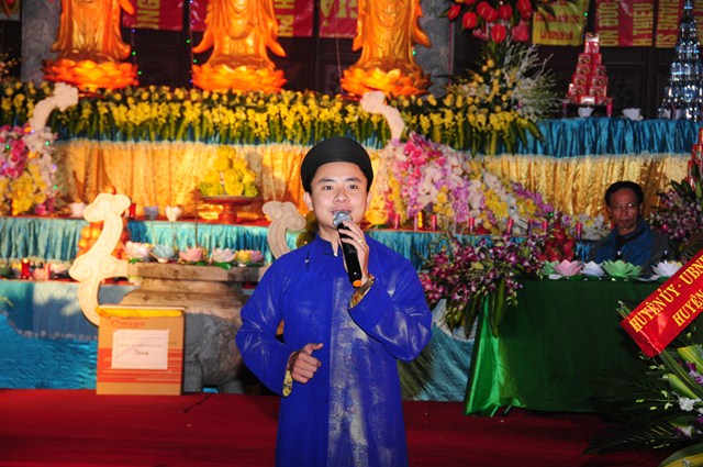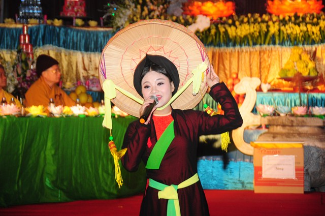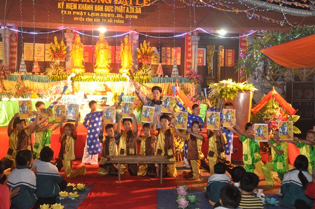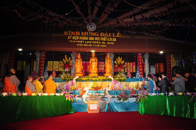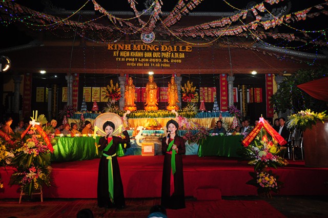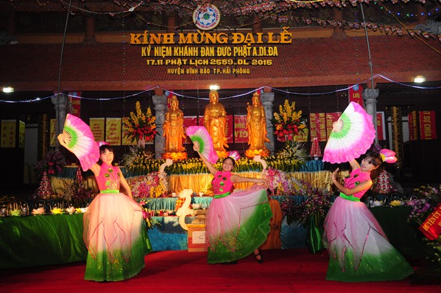 Trước khi chính thức bước vào buổi lễ hành chính và hoa đăng kính mừng Khánh đản đức từ phụ A Di Đà là các tiết mục văn nghệ do các thầy cô giáo, các em học sinh trường tiểu học Vĩnh Bảo và các văn nghệ sỹ CLB Thiện Tâm đến từ thủ đô Hà Nội thành tam cúng dàng, cùng với đó là các ca khúc ca ngợi Chư Phật, Bồ Tát và ca ngợi quê hương Đất nước.