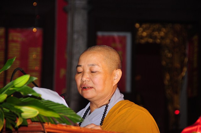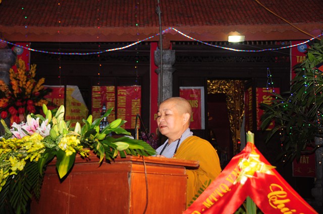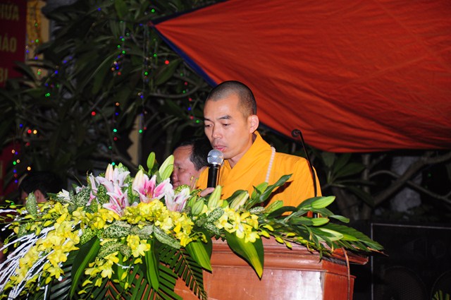 Đúng 19 giờ 30 phút đã chính thức diễn ra Đêm hội hoa đăng kính mừng Khánh đản Đức Phật A Di Đà PL.2559 – DL. 2015. Sau nghi thức niệm Phật cầu gia bị, Ni Sư Thích Diệu Tâm – Trưởng BTC đại lễ, trụ trì chùa Đông Ân đã lên tuyên đọc diễn văn khai mạc Đêm hội hoa đăng mừng khánh đản đức Phật A Di Đà.