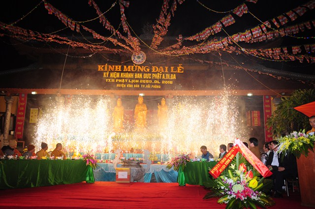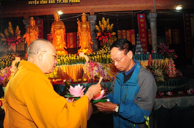 Quang lâm và chứng minh Đêm hoa đăng có sự hiện diện của TT. Thích Thanh Giác – Phó trưởng Ban thường trực Ban hoằng pháp TƯ GHPGVN, phó trưởng ban thường trực BTS GHPGVN thành phố Hải Phòng, trưởng BTS GHPGVN huyện Vĩnh Bảo; Đại đức Thích Bản Tâm – Ủy viên BTS GHPGVN thành phố Hải Phòng, phó Ban trị sự GHPGVN huyện Vĩnh Bảo; NS. Thích Diệu Tâm – Ủy viên BTS GHPGVN thành phố Hải Phòng, phó BTS GHPGVN huyện Vĩnh Bảo, trụ trì chùa Đông Ân,; NS. Thích Tâm Chính – Trưởng Ban từ thiện – xã hội GHPGVN Tp. Hải Phòng cùng đông đảo chư tôn đức Tăng Ni nội ngoại thành của thành phố Hải Phòng cũng về tham dự buổi lễ.
