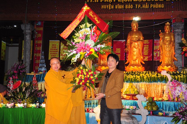 Đại lễ cũng đã được đón nhận lẵng hoa chúc mừng của ông: Lê Văn Thành – Bí thư thường trực thành Ủy, chủ tịch UBND thành phố Hải Phòng cùng các lắng hoa chúc mừng của các khối ban ngành, đoàn thể trên địa bàn huyện Vĩnh Bảo.