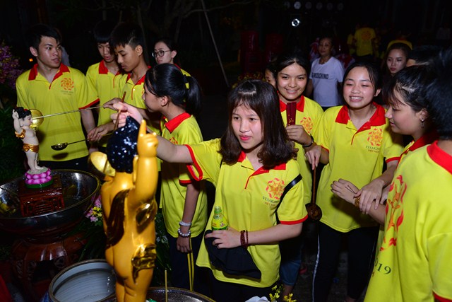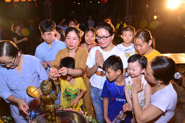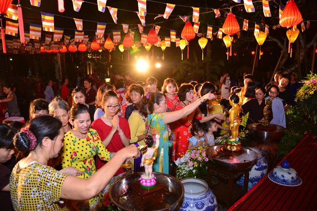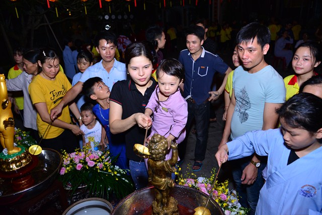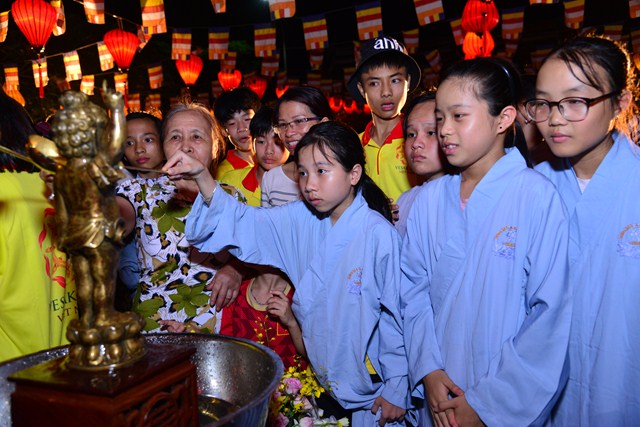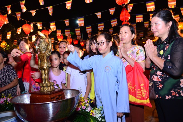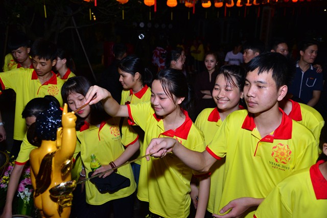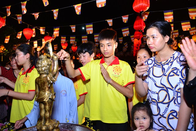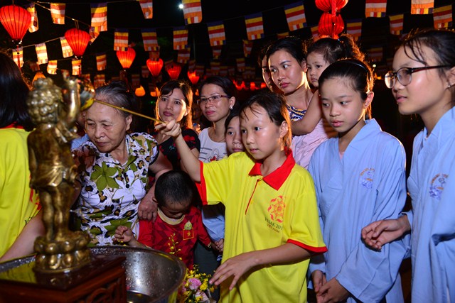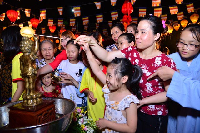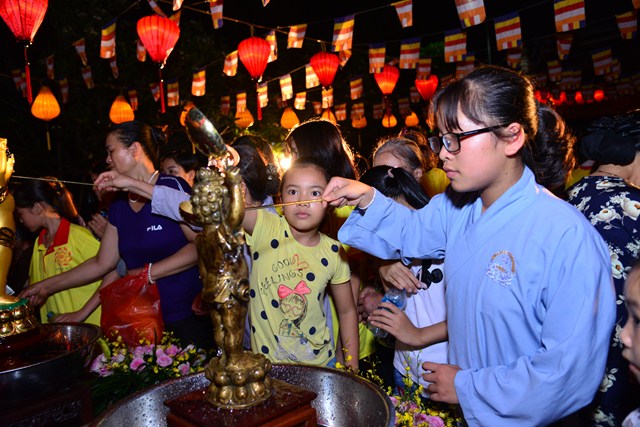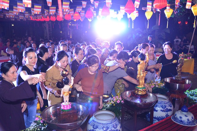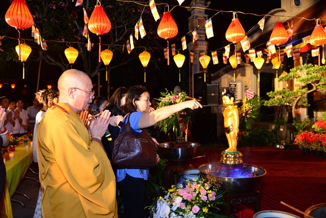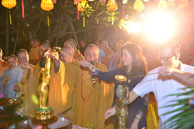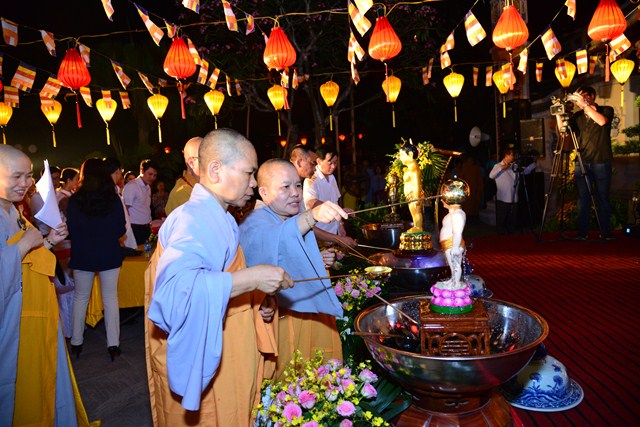 Trước khi kết thúc buổi lễ, Chư tôn đức Tăng Ni, quan khách chính quyền và các Phật tử đã làm lễ dâng hương bạch Phật, cầu nguyện Thế giới hòa bình, chúng sinh an lạc, Phật pháp trường tồn và cử hành nghi lễ tắm Phật theo nghi thức Phật giáo truyền thống với tấm lòng chí thiết, chí thành kính dâng lên đức Từ phụ Bản sư Thích Ca Mâu Ni Phật nhân ngày đản sinh.