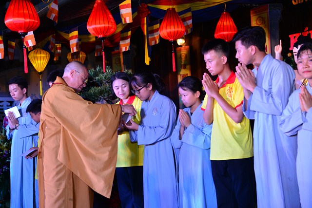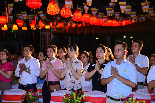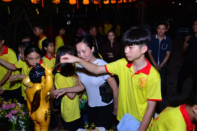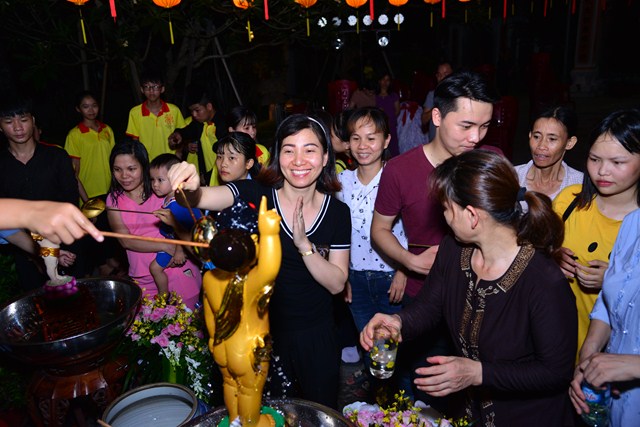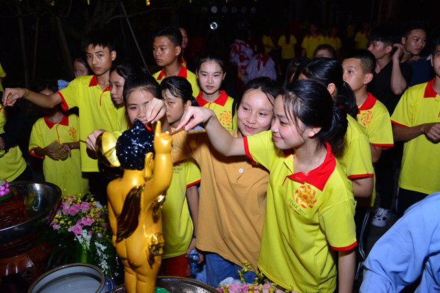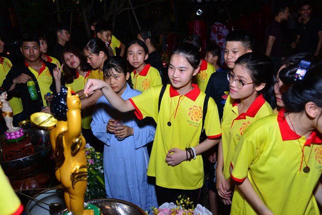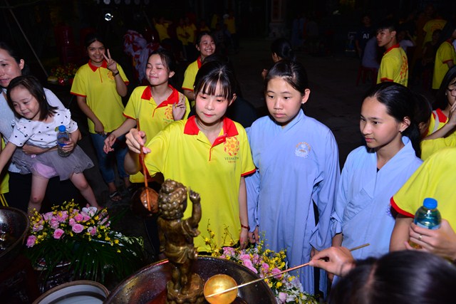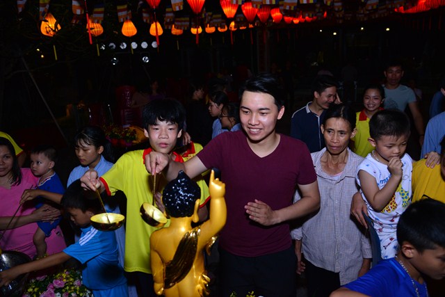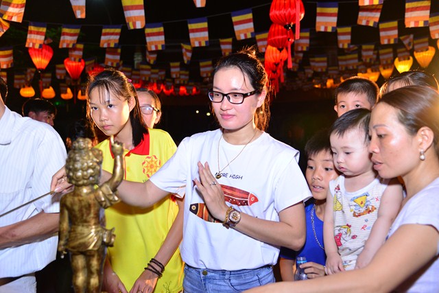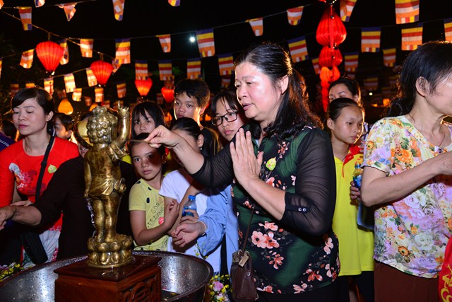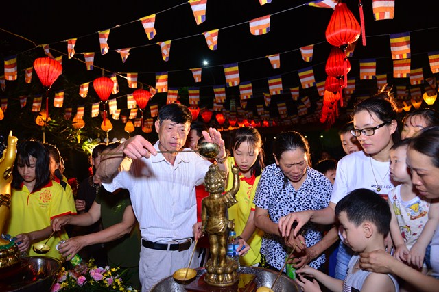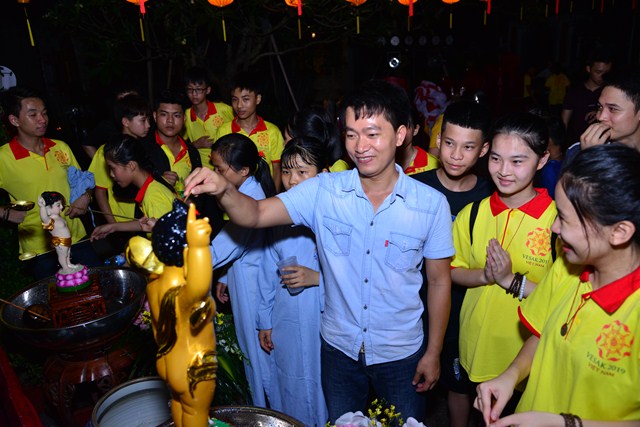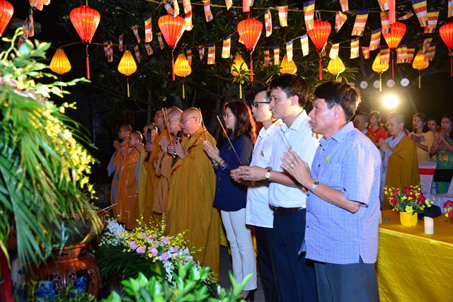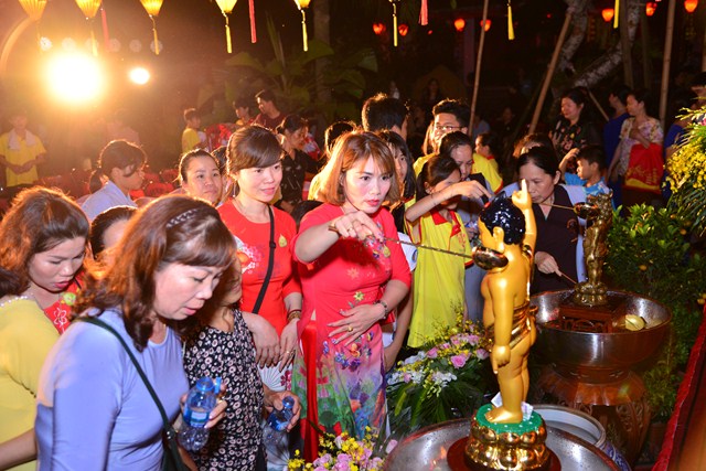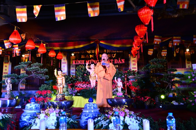 Trước khi kết thúc buổi lễ, Chư tôn đức Tăng Ni, quan khách chính quyền và các Phật tử đã làm lễ dâng hương bạch Phật, cầu nguyện Thế giới hòa bình, chúng sinh an lạc, Phật pháp trường tồn và cử hành nghi lễ tắm Phật theo nghi thức Phật giáo truyền thống với tấm lòng chí thiết, chí thành kính dâng lên đức Từ phụ Bản sư Thích Ca Mâu Ni Phật nhân ngày đản sinh.