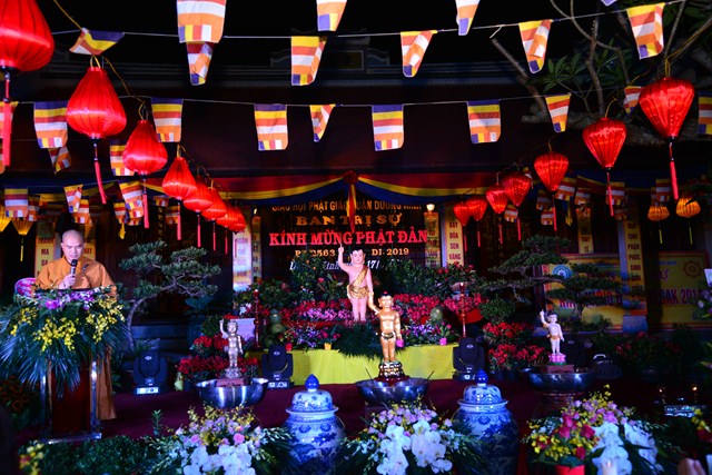 Tiếp đó, Đại đức Thích Quảng Nghĩa – Trưởng BTS GHPGVN quận Dương Kinh đã lên tuyên đọc Diễn văn chào mừng Đại lễ Phật đản PL.2563 – DL. 2019 của Hòa thượng Thích Thiện Nhơn – Chủ tịch HĐTS GHPGVN. Trong diễn văn, Hòa thượng nhấn mạnh: “Trong bối cảnh thế giới đang phải đối mặt với những xung đột, khủng bố, chiến tranh, bất bình đẳng, khủng hoảng môi trường sinh thái và biến đổi khí hậu, sự phát triển như vũ bão của khoa học công nghệ, cuộc cách mạng công nghiệp 4.0 đang làm thay đổi mọi mặt đời sống và các cấu trúc truyền thống, thì hơn lúc nào hết, chúng ta phải cùng nhau phát huy những giá trị cốt lõi của Đạo Phật về tinh thần khoan dung, vô ngã, vị tha, hòa hợp và hòa bình thông qua con đường Bát chánh đạo nhằm góp phần giải quyết những thách thức vấn nạn toàn cầu. Điều đặc biệt nhất là vạn vật trở nên kết nối, mọi thứ đều có thể xóa nhòa khoảng cách về mặt địa lý, các cộng đồng và các quốc gia ngày càng trở nên phụ thuộc lẫn nhau, thế giới dần dần bắt đầu giống như một xã hội toàn cầu…”.