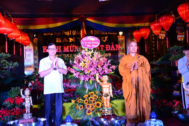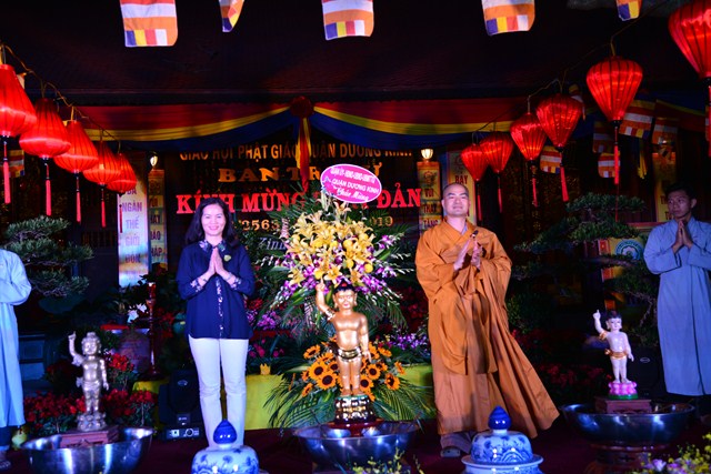 Phát biểu tại buổi lễ, bà Đỗ Thị Thanh Thủy – Phó chủ tịch UBND quận Dương Kinh bày tỏ niềm vui mừng trước sự thành công của Đại lễ Phật đản Liên Hợp Quốc năm 2019 do GHPGVN đăng cai tổ chức tại chùa Tam Chúc, tỉnh Hà Nam từ ngày 12 đến ngày 14/5/2019. Nhân đây, bà cũng biểu dương những đóng góp của Phật giáo nói chung và quận Dương Kinh nói riêng đối với các phong trào xã hội do thành phố cũng như địa phương phát động. Thay mặt lãnh đạo quận, bà đã gởi lời chúc an lành đến chư tôn đức Tăng Ni và quý Phật tử quận nhà nhân mùa Phật đản.