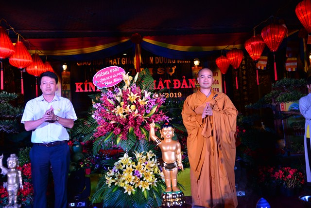 Ban tôn giáo thành phố tặng hoa chúc mừng Phật đản