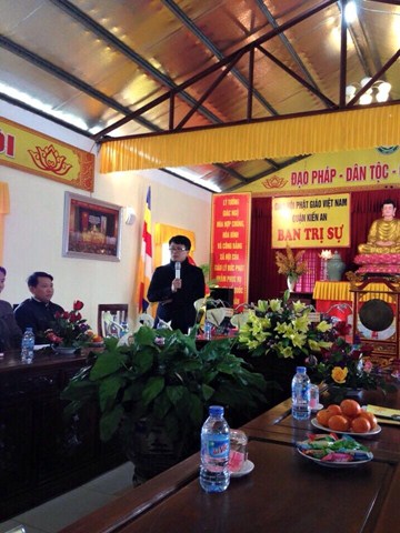 Thay mặt cho chính quyền quận Kiến An, ông Lê : Lê Trí Vũ – Bí thư quận ủy quận đã lên phát biểu, đánh giá cao sự đóng góp của Phật giáo đối với vấn đề an sinh xã hội, Phật giáo đã góp một phần không nhỏ trong công cuộc xóa đói, giảm nghèo do Đảng và Nhà nước đã đề ra trong thời gian vừa qua. Đồng thời ông cũng gửi lời chúc mừng tới BTS GHPGVN quận Kiến An đã đạt được những thành tựu đáng kể trong các công tác Phật sự năm 2015 vừa qua, chúc Chư tôn đức Tăng Ni, quý Phật tử trên địa bàn quận đón xuân Bính Thân thật an lạc và hạnh phúc.
