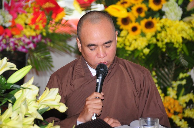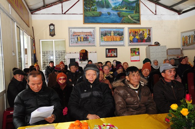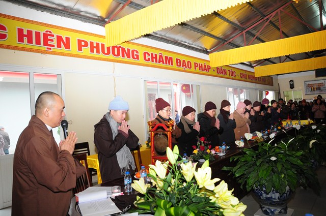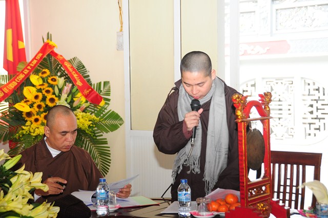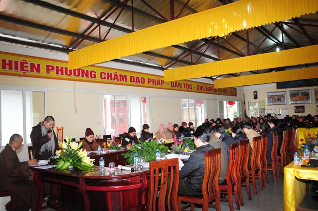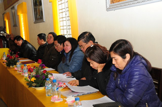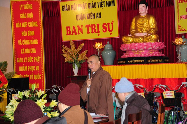 Sau nghi thức niệm Phật cầu gia bị, đại diện cho BTS GHPGVN quận Kiến An, Đại đức Thích Bản Nhiên đã lên đọc dự thảo Báo cáo tổng kết công tác Phật sự năm 2015 và đề ra phương hướng hoạt động trong năm 2016. Theo đó, trong năm 2015, BTS GHPGVN quận Kiến An đã thực hiện tốt các đường lối chính sách của Đảng và Nhà nước đã đề ra, thực hiện theo đúng phương châm của Giáo Hội là Phật giáo luôn đồng hành cùng Dân tộc. Mặc dù vấn đề an ninh, chính trị, kinh tế – xã hội của nước ta còn gặp nhiều khó khăn, thách thức nhưng dưới sự chỉ đạo của GHPGVN Tp. Hải Phòng cũng như của BTS GHPGVN quận Kiến An cùng với sự quan tâm giúp đỡ của các cấp lãnh đạo thành phố, lãnh đạo cấp cơ sở, năm 2015, BTS GHPGVN quận Kiến An đã hoàn thành tốt các công tác Phật sự tiêu biểu. Đặc biệt là công tác từ thiện, an sinh xã hội của BTS GHPGVN quận Kiến An luôn được đặt lên hàng đầu, luôn phát huy được tư tưởng từ bi, cứu khổ, ban vui của đạo Phật, thực hiện theo đúng phương châm của Giáo hội đã đề ra: “ Đạo pháp – Dân tộc – Chủ nghĩa xã hội.”