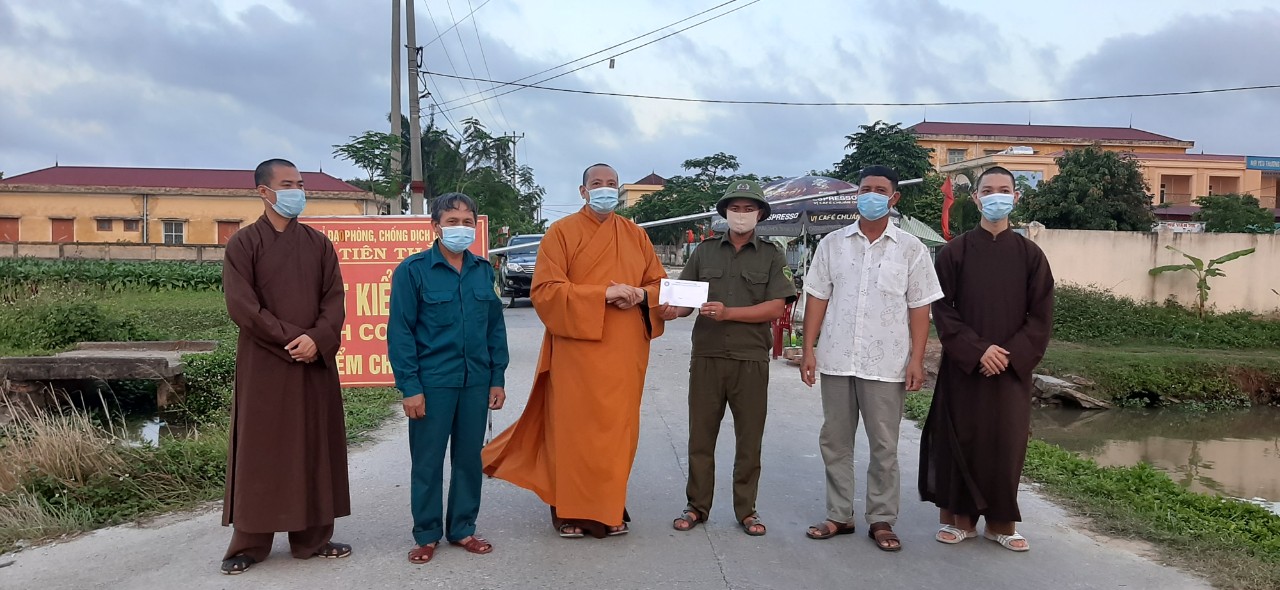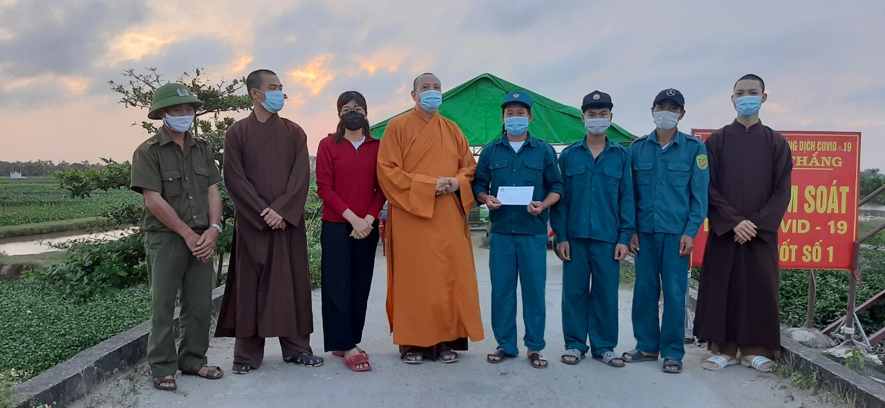 Trước diễn biến phức tạp của dịch bệnh Covid-19 đợt thứ 4 đang bùng phát rất nhanh tại một số tỉnh, thành trên cả nước , chiều ngày 10/05/2021 ( nhằm ngày 29/03 năm Tân Sửu), trên tinh thần Từ bi – Cứu khổ – Ban vui của đạo Phật và thực hiện chỉ đạo của HĐTS TƯ GHPGVN, cũng như chỉ đạo của Ban trị sự GHPGVN thành phố Hải Phòng về việc kêu gọi Chư tôn đức Tăng Ni, Phật tử, các tổ chức, cá nhân ủng hộ công tác phòng chống dịch bệnh Covid-19, Ban trị sự GHPGVN huyện Tiên Lãng đã tới động viên thăm hỏi và tặng quà cho các cán bộ, chiến sỹ đang làm việc tại các chốt kiểm soát dịch Covid-19 trên địa bàn huyện.