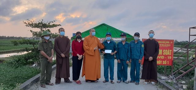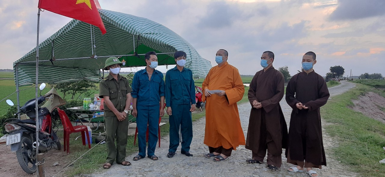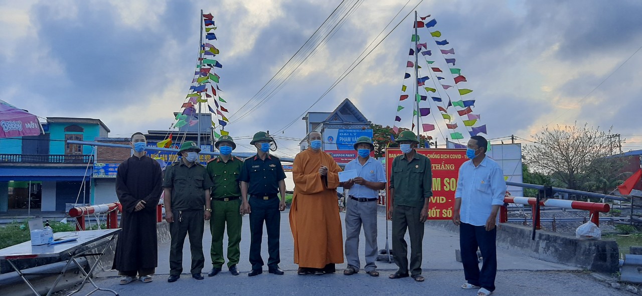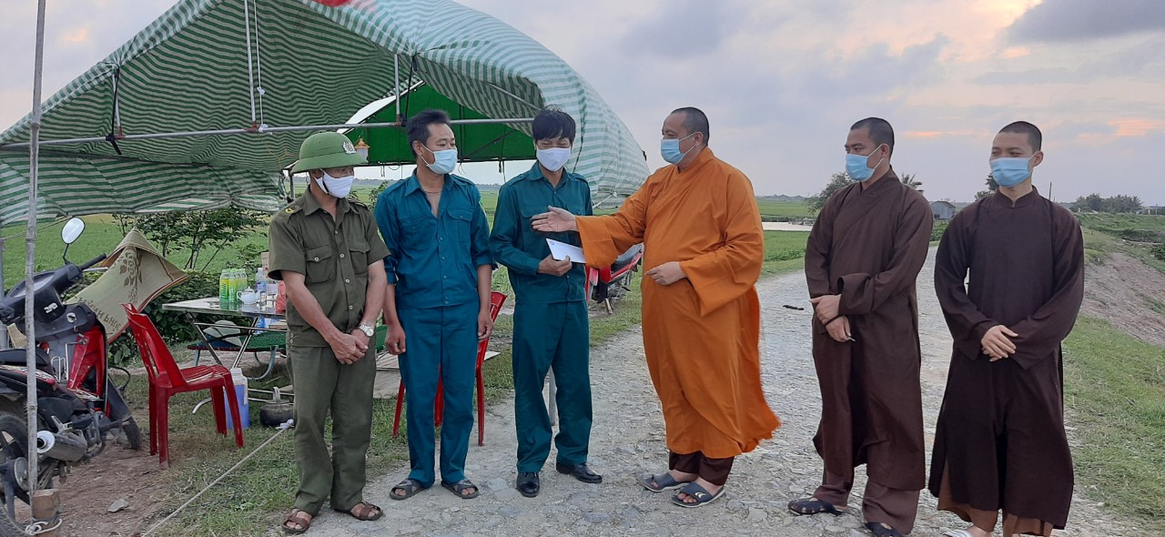 TT. Thích Quảng Minh tặng quà cho cán bộ, chiến sỹ tại chốt kiểm soát dịch bệnh Covid-19 số 1 tại xã Tiên Thắng, huyện Tiên Lãng