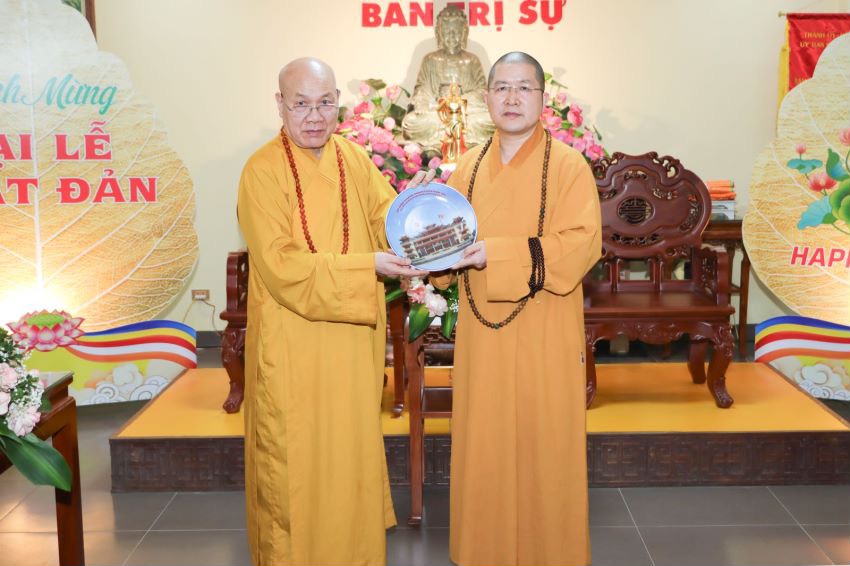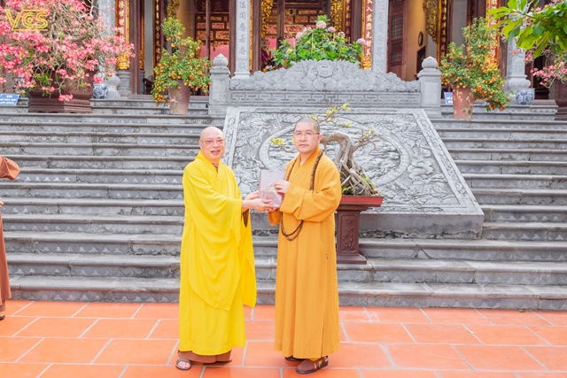 Phái đoàn tặng quà cho Hòa thượng Thích Thanh Giác – Trụ trì chùa Long Hoa