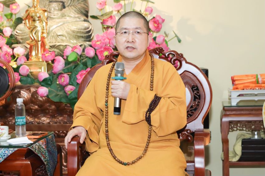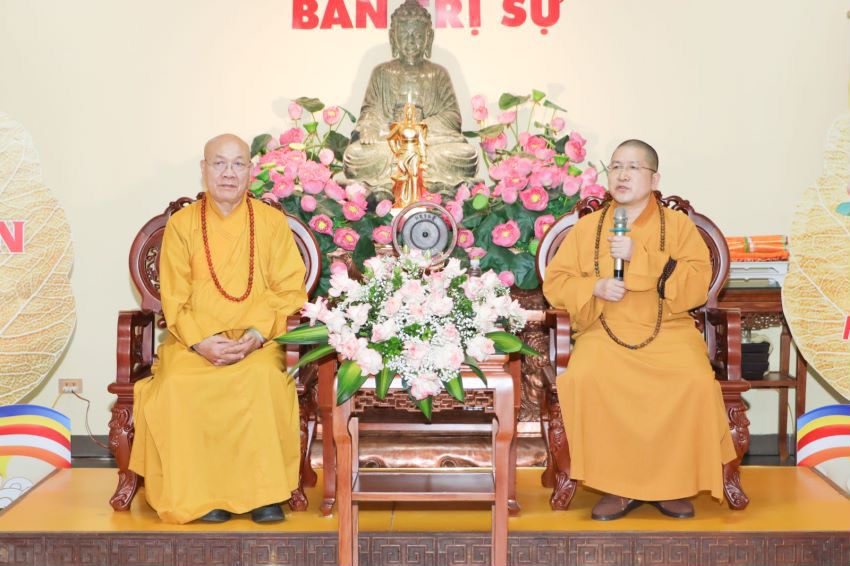 Thay mặt phái đoàn, Hòa thượng trưởng phái đoàn đã giới thiệu các thành viên trong đoàn và mục đích chuyến viếng thăm Phật giáo một số tỉnh thành thuộc miền Bắc Việt Nam, trong đó có kế hoạch tới thăm Hòa thượng trụ trì và lễ Phật tại chùa Long Hoa. Hòa thượng đã có lời tri ân tới sự đón tiếp nồng hậu, thắm tình đạo vị của Hòa thượng trụ trì chùa Long Hoa.