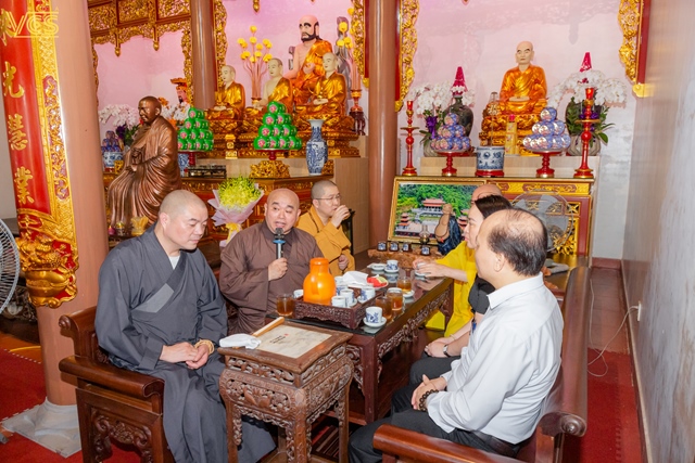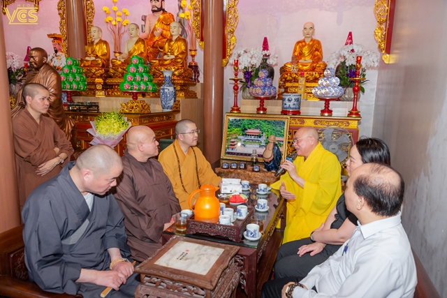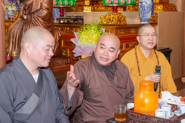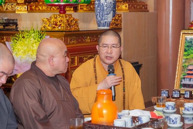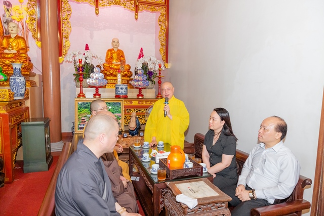 Thay mặt phái đoàn, Hòa thượng trưởng phái đoàn đã giới thiệu các thành viên trong đoàn và mục đích chuyến viếng thăm Phật giáo một số tỉnh thành thuộc miền Bắc Việt Nam, trong đó có kế hoạch tới thăm Hòa thượng trụ trì và lễ Phật tại chùa Long Hoa. Hòa thượng đã có lời tri ân tới sự đón tiếp nồng hậu, thắm tình đạo vị của Hòa thượng trụ trì chùa Long Hoa.