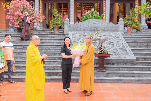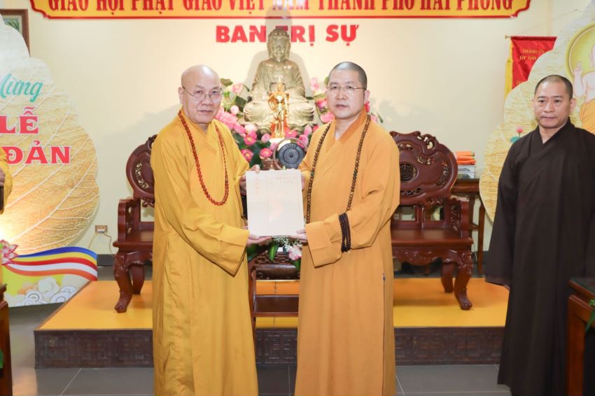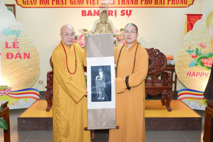 Đón tiếp phái đoàn có Hòa thượng Thích Quảng Tùng – Phó Chủ tịch HĐTS GHPGVN, trưởng Ban trị sự GHPGVN thành phố Hải Phòng; Hòa thượng Thích Thanh Giác – Phó trưởng ban Thường trực Ban trị sự GHPGVN thành phố Hải Phòng, trụ trì chùa Long Hoa; TT. Thích Tục Minh – Ủy viên Dự khuyết HĐTS GHPGVN. Phó Chánh thư ký, chánh văn phòng BTS GHPGVN thành phố Hải Phòng; Đại đức Thích Thanh Trường – Phó trưởng ban Ban Phật giáo Quốc tế GHPGVN thành phố Hải Phòng, cùng đại diện chư tôn đức thường trực Ban trị sự GHPGVN thành phố.