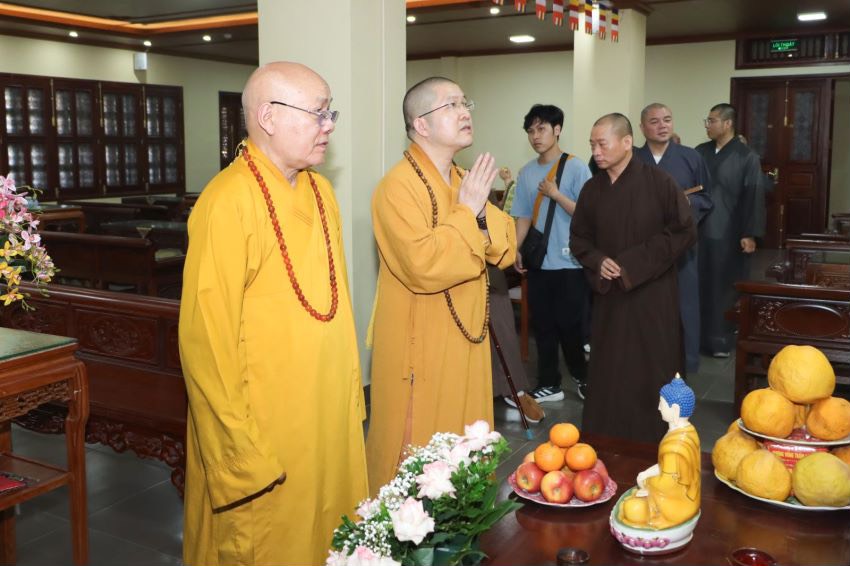 Sau đó, đoàn đã thăm một số hạng mục kiến trúc chính và dâng hương, bạch Phật, lễ Tổ tại Tổ đường và chính điện chùa Nam Hải, cầu nguyện Thế giới hòa bình, chúng sinh an lạc và cầu nguyện cho Phật pháp được trường tồn, cầu nguyện cho Phật giáo ngày càng được hưng thịnh, phát triển.