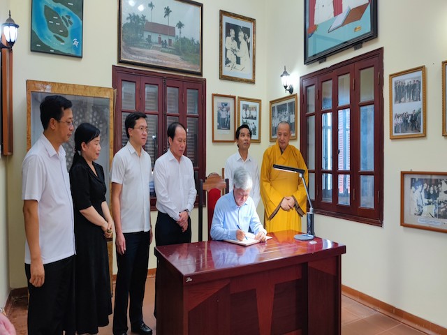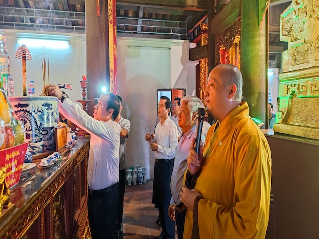 Dịp này, phái đoàn đã thành kính dâng hương, dâng hoa tưởng niệm cố Chủ tịch nước Tôn Đức Thắng và dâng hương, lễ Phật, cầu nguyện Quốc thái dân an tại chùa Hộ Quốc nằm trong quẩn thể di tích khu lưu niệm cố Chủ tịch nước Tôn Đức Thắng.