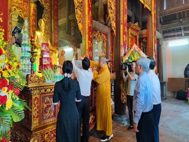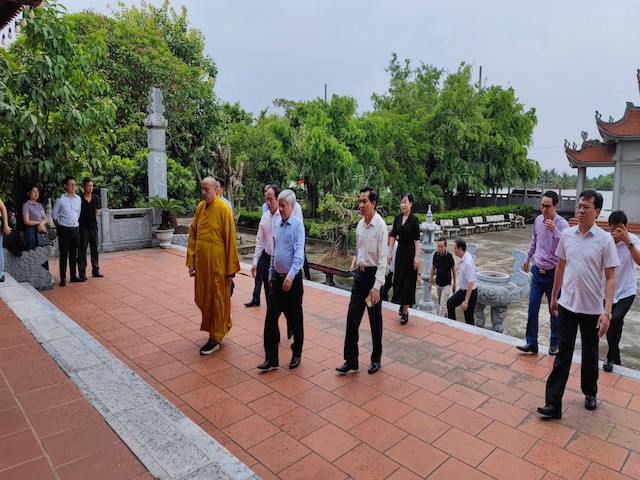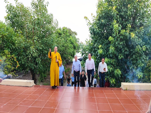 Đón tiếp phái đoàn Ủy ban Trung ương MTTQ Việt Nam có ông: Lê Tiến Châu – Ủy viên TƯ Đảng, Bí thư Thành ủy thành phố Hải Phòng; ông: Cao Xuân Liên – Ủy viên Ban Thường vụ Thành ủy, Chủ tịch UB MTTQVN thành phố, cùng các ông bà đại diện cho Huyện ủy, HĐND, UBND, UB MTTQVN huyện Tiên Lãng; Thượng tọa Thích Quảng Minh – Ủy viên thường trực, trưởng ban Ban Văn hóa GHPGVN thành phố Hải Phòng, trưởng Ban trị sự GHPGVN huyện Tiên Lãng.
