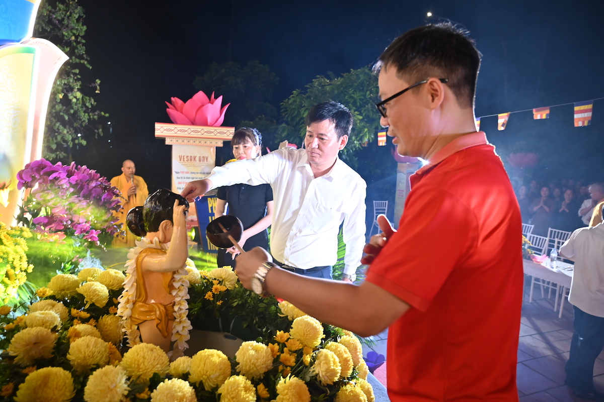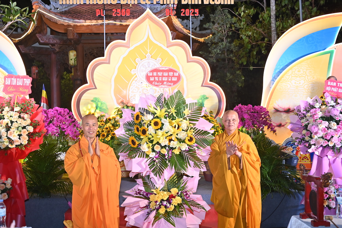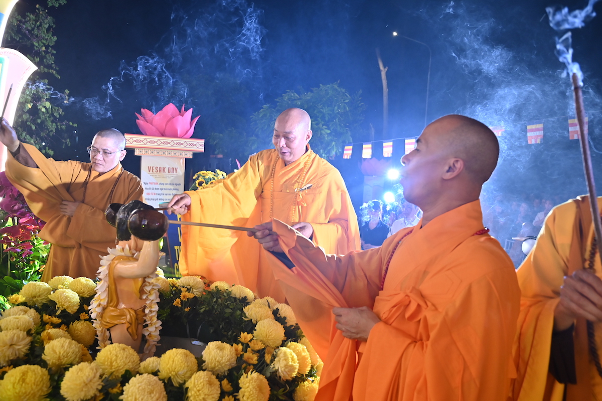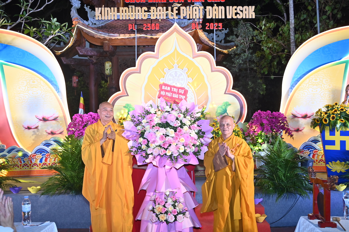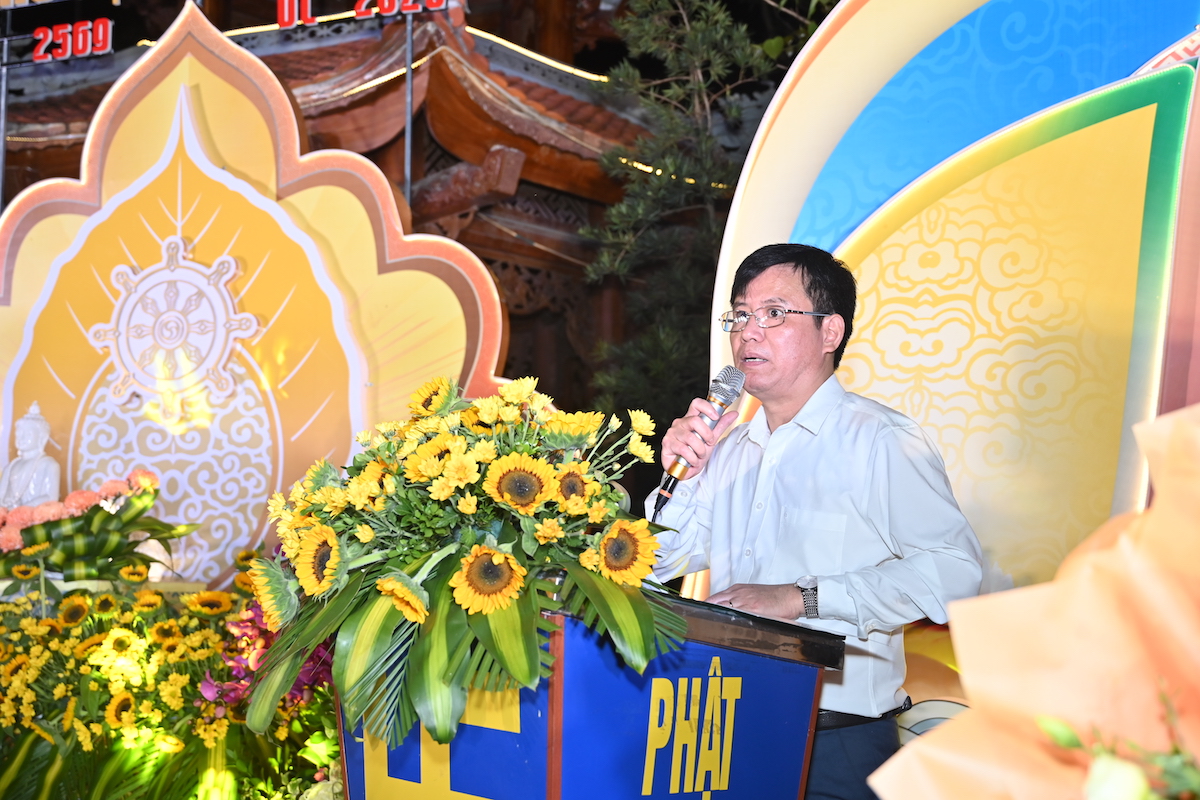 Sau nghi thức niệm Phật cầu gia bị, chào Quốc kỳ, Đạo kỳ và một phút nhập từ bi quán tưởng nhớ chư vị tiền bối hữu công, chư Thánh tử đạo, anh linh các anh hung liệt sĩ, TT. Thích Tục Minh đã lên cung tuyên thông điệp Phật đản PL.2569 của Đức Đại lão Hòa thượng Đệ tứ Pháp chủ GHPGVN, thượng Trí, hạ Quảng gửi Tăng Ni, Phật tử trong nước và đang sinh sống tại nước ngoài. Toàn thể đại chúng đã trang nghiêm thành kính đón nghe bức thông điệp Phật đản đầy ý nghĩa chào mừng Đại lễ Phật đản Liên Hợp Quốc Vesak 2025 được tổ chức tại thành phố Hồ Chí Minh, Việt Nam. Thông điệp nhấn mạnh vai trò thiêng liêng của tinh thần đoàn kết và bao dung trong sự nghiệp kiến tạo hòa bình, hạnh phúc, và phát triển bền vững cho nhân loại. Đức Pháp chủ cũng kêu gọi toàn thể Phật tử thắp sáng tình yêu thương, thực hành hạnh từ bi, trí tuệ và lan tỏa chánh niệm trong đời sống hiện tại. Đặc biệt, năm nay là lần thứ 4, Đại lễ Vesak Liên hợp quốc được tổ chức tại Việt Nam, và là lần đầu tiên được tổ chức tại Thành phố Hồ Chí Minh nhân dịp kỷ niệm 50 năm ngày thống nhất đất nước.