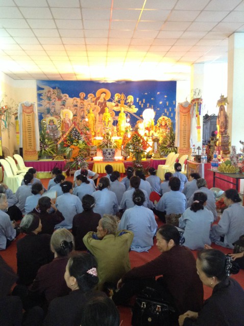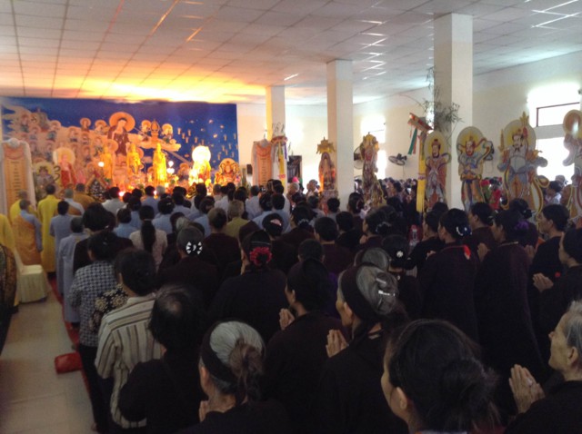 Tiếp đó, Chư tôn đức tăng ni huyện Tiên Lãng đã cùng hàng ngàn Phật tử làm lễ dâng hương, bạch Phật, tụng kinh cầu nguyện cho thế giới hòa bình, cầu nguyện cho anh linh các anh hùng liệt sỹ, chiến sỹ trận vong, đồng bào tử nạn bị chết đói năm 1945 được siêu sinh Tịnh Độ.