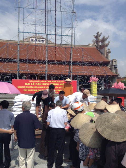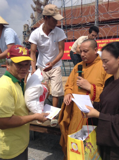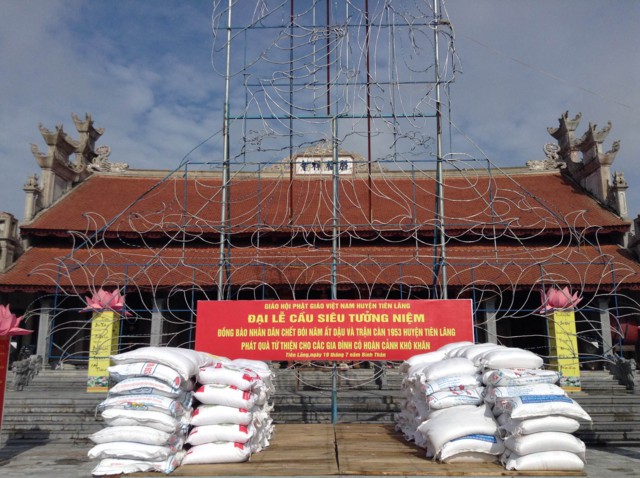 Nhân dịp này, Ban trị sự GHPGVN huyện Tiên Lãng cũng đã trao 400 phần quà với tổng trị giá hàng trăm triệu đồng, bao gồm gạo, vật dụng cá nhân, tiền mặt cho các hộ gia đình có hoàn cảnh khó khăn trên địa bàn huyện trên tinh thần hướng tới kỷ niệm 71 năm ngày cách mạng tháng 8 thành công và Quốc khánh nước Cộng Hòa Xã Hội Chủ Nghĩa Việt Nam ( 2/9/1945 – 2/9/2016).