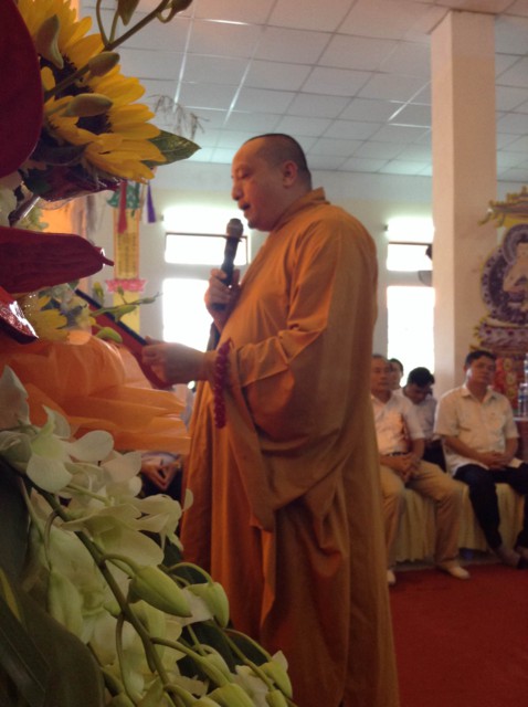 Trước khi chính thức bước vào buổi lễ cầu siêu, TT. Thích Quảng Minh đã ôn lại những trang sử hào hùng, những truyền thống tốt đẹp của đồng bào, nhân dân Việt Nam trong 2 cuộc khánh chiến chống thực dân Pháp và đế quốc Mỹ. Đặc biệt là ôn lại những truyền thống tốt vẻ vang, tốt đẹp của quân và dân huyện Tiên Lãng trong trận Cờ Lốt tháng 8 năm 1953 do thực dân Pháp gây ra. Trong trận chiến này đã có rất nhiều chiến sỹ, đồng bào, nhân dân huyện Tiên Lãng đã hy sinh anh dũng để bảo vệ cho độc lập tự do của Đất nước, bảo vệ cho huyện Tiên Lãng để chúng ta có cuộc sống ấm no, hạnh phúc như ngày hôm nay. Chính vì vậy để tưởng nhớ đến công ơn của các anh hùng liệt sỹ nên Ban trị sự GHPGVN đã trang nghiêm trọng thể tổ chức đại lễ cầu siêu cho các anh hùng liệt sỹ và đồng bào tử nạn trong nạn đói Ất Dậu – 1945.